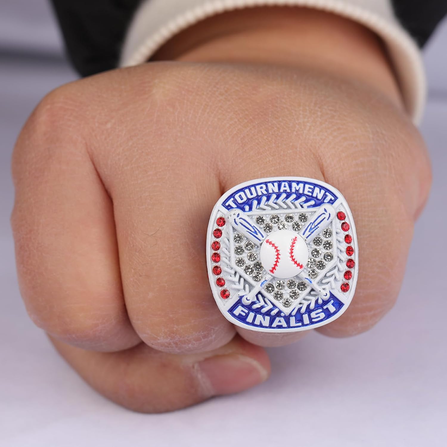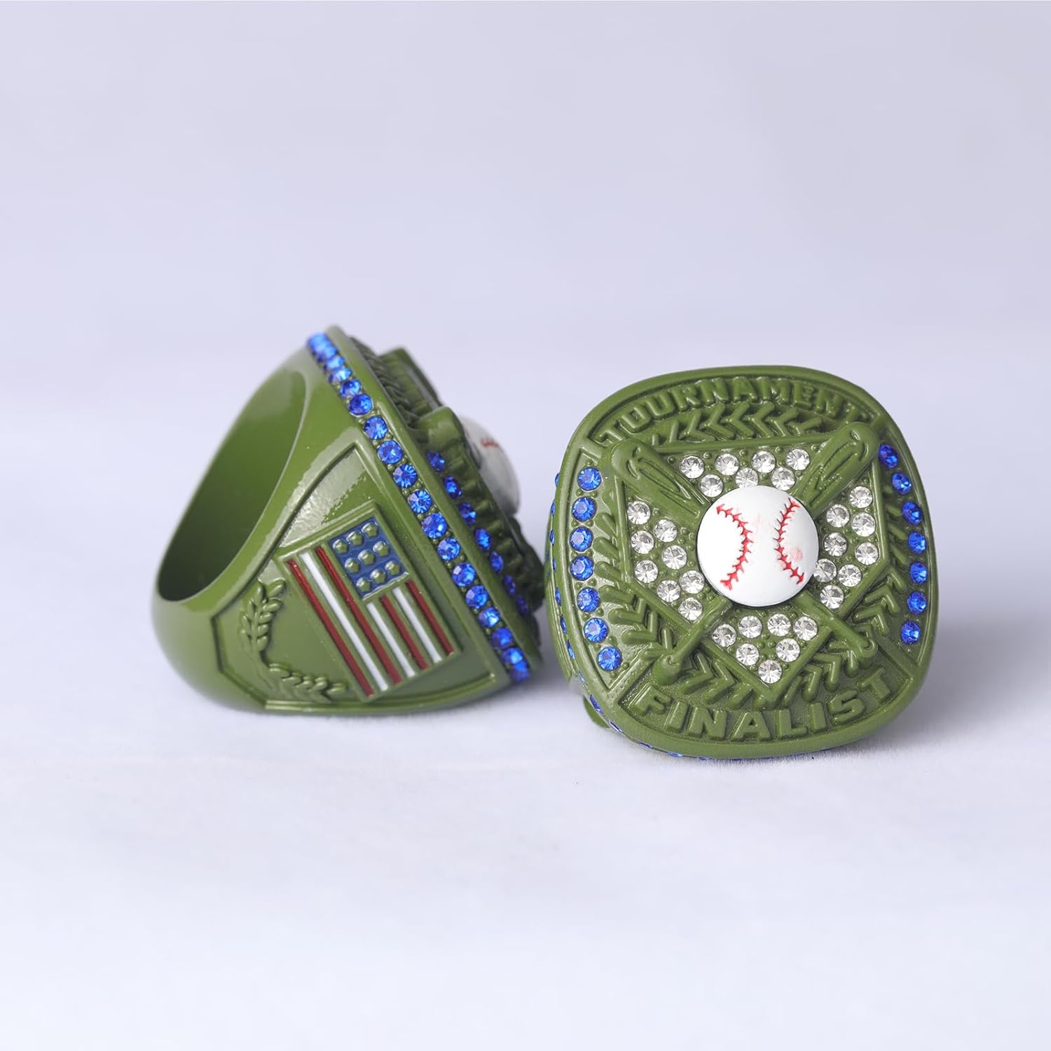 This is a high quality baseball prize for baseball events. ring size is around size 9. but it is a big and heavy ring. It was casted by high quality Steel mold. clear words, hard surface. This ring is a high quality prize and gift for baseball players who won the games.
