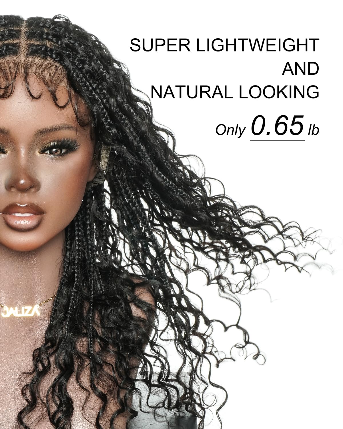 | Other Special Features of the Product | Full Lace, Human Hair Boho Curls, Invisible Drawstring, Knotless Box Braids |