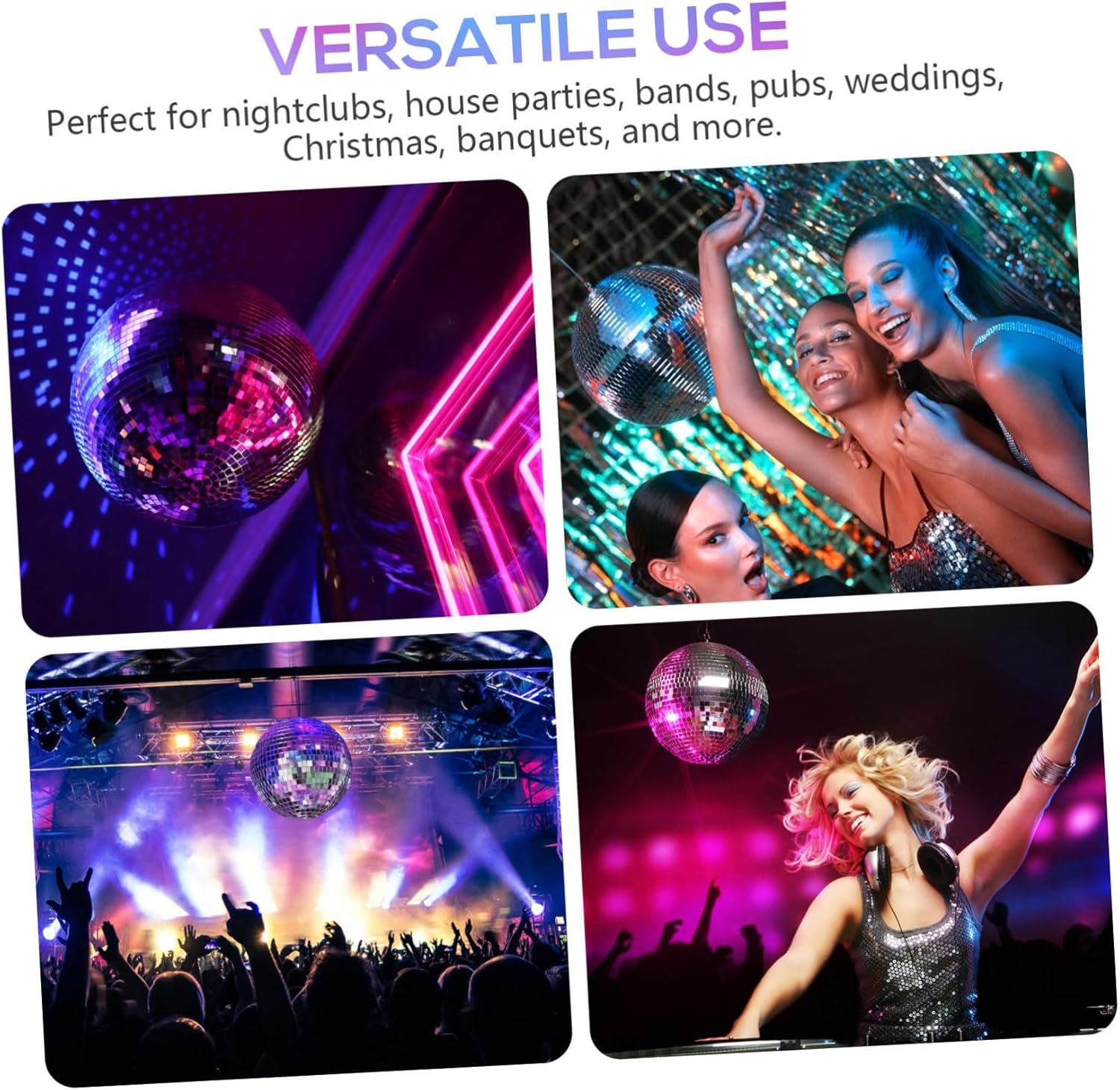 Package Include 1 x mirror ball Characteristics - Material: Glass KTV Glass Ball. - Size: About 30.00X30.00X30.00cm/ 11.79X11.79X11.79inch ktv decor. - Color: Silver mirror. - Made of construction with outside glass, forms a stable looking, it is pretty and easy to use 12 inch disco ball. - This product uses the principle of light reflection, makes a charming effect for party hanging disco ball. - for party, wedding, pubs, banquets, nightclubs and disco. Can be a decoration for adult dance party, wedding, Christmas tree, etc inch. - The mirror disco ball has a for easy hanging. Nice addition to any disco themed party wedding. - Shows even shining and amazing impression when used with rotating motor and spotlight reflective.Goods Descriptiondisco balls It will show even shining and amazing impression when used with rotating motor and spotlight to create atmosphere.disco balls decoration different sizes Our mirror disco ball is made up of quality materials.lighting ball Proven and tested for its durability and functionality.disco ball table decor Dance and enjoy with these cool and fun silver hanging party disco ball