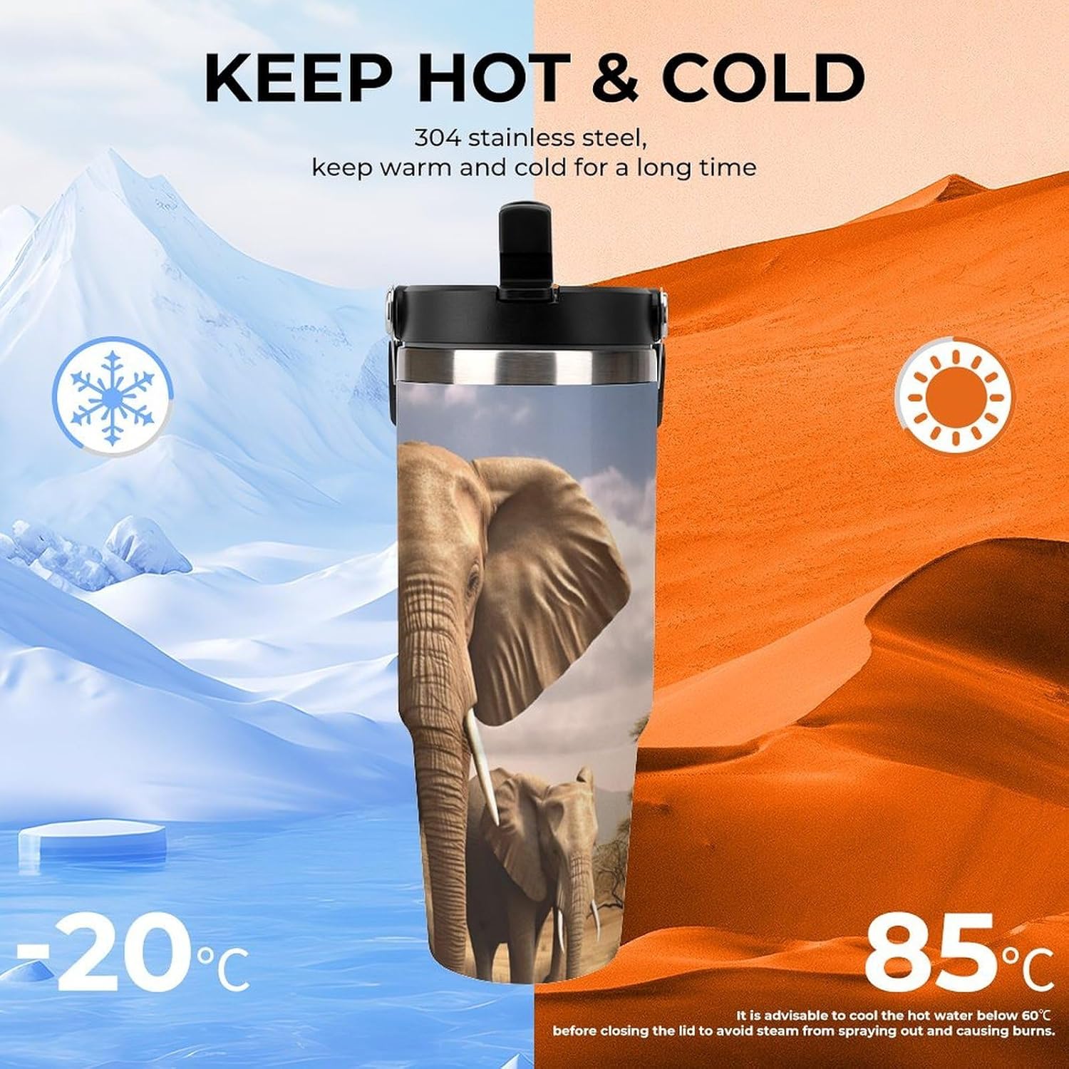 Our Elephant Family travel water bottle is made of food-grade stainless steel. The wide mouth design makes it easy to clean and add ice, and the powder-coated exterior is non-slip and durable, ensuring driving safety.Whether you prefer sipping or quenching your thirst, this personalized insulated mug has you covered. Featuring a splash-proof straw design, a sealing ring securely holds the reusable straw, and a drinking spout and full-coverage lid for enhanced leak-proof performance, this mug allows you to easily carry ice water to work, meetings, the gym, or on trips.You can give it to your friends and family as a birthday, Mother's Day, Father's Day, New Year's, Thanksgiving, and holiday gift. It's a thoughtful present.