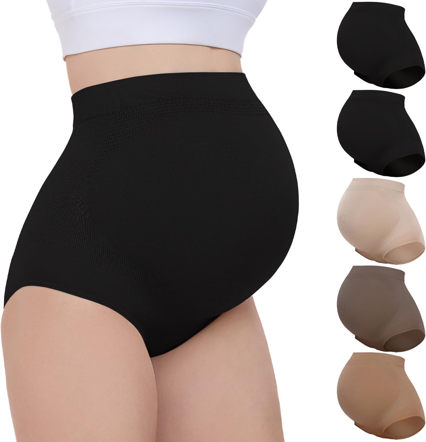 Boguish 5 Pack Women's Maternity Underwear Over Bump, Seamless High Waist Brief Panties Pregnancy Soft Pregnancy Shapewear