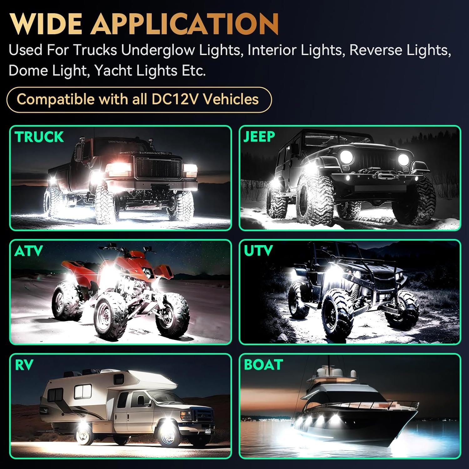 | Compatible with Vehicle Type | For all Car with DC 12 power supply, such as Trucks, Jeeps, cars, SUVs, off-road vehicles, ATVs, SXS, UTVs, RZRs, Golf Carts, RV, Toyota, Tacoma, Snowmobile, Semi truck, Pickup Truck, four wheeler |