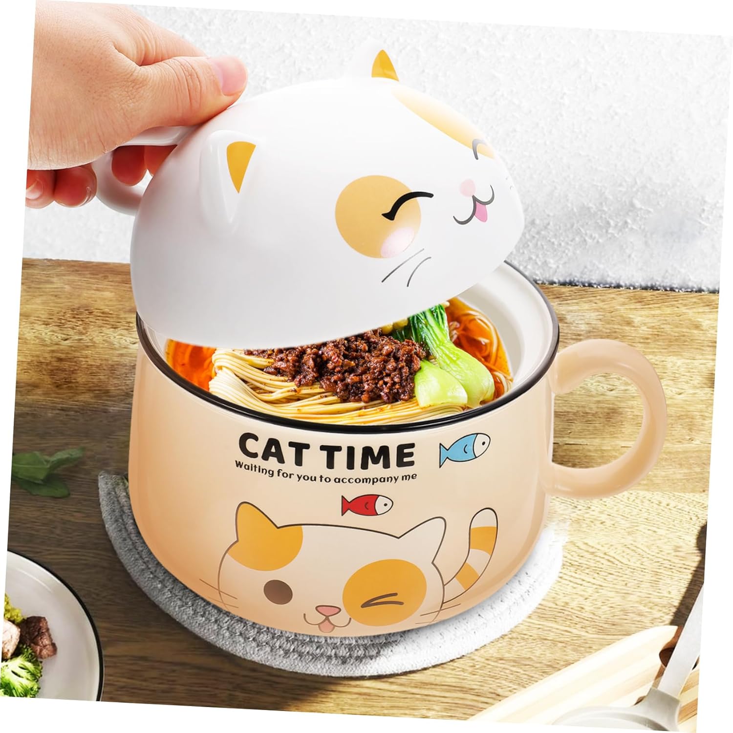 Package Include 1 x Instant Noodles Bowl Characteristics -Material:Ceramic adorable bowl -Color: yellow kitchen supplies -Size: 18.00X15.00X15.00cm;/7.07X5.89X5.89in; ceramic bowl -Smooth and polished surface, easy to use and clean, you can use with much more confidence breakfast bowl. -Enough capacity, can store soup, salad, porridge, rice and more food, satisfy your demand lovely bowl. -Light in weight, also the handle enables you to hold it more easily, saves time and efforts tableware. -In adoption of ceramic materials, this bowl is smooth and comfortable touch, for long term to use soup container. -The lid design enables to keep in proper temperature, bringing you satisfying using feeling noodles bowl.Goods Descriptionsoup bowls It is for holding rice, noodle, soup and other food.bowl This food bowl with lid is made of , and to be contacted with food.decorative bowl Proper size, easy to store and will not take up many spaces.portable bowl Lightweight and convenient for holding food