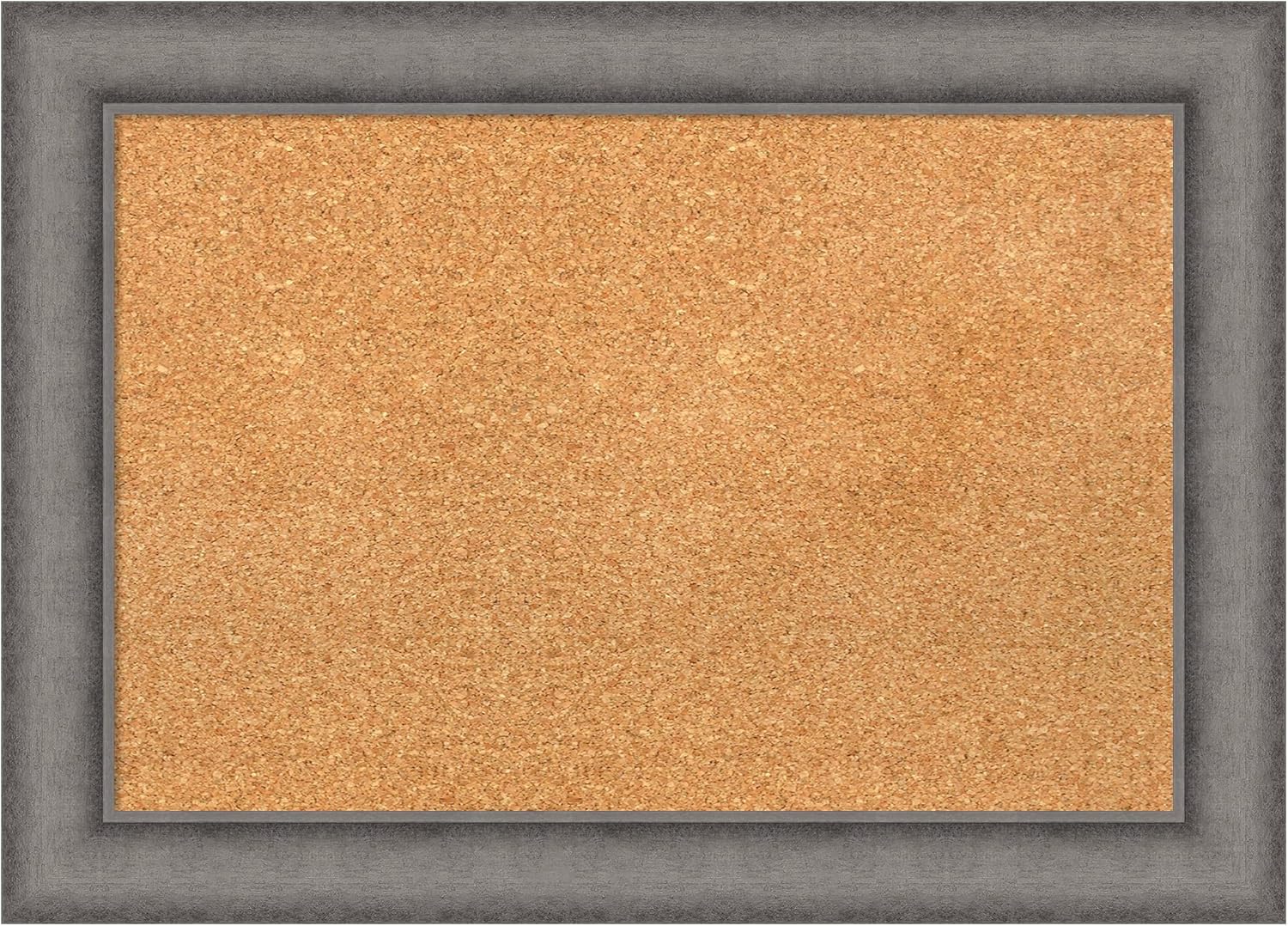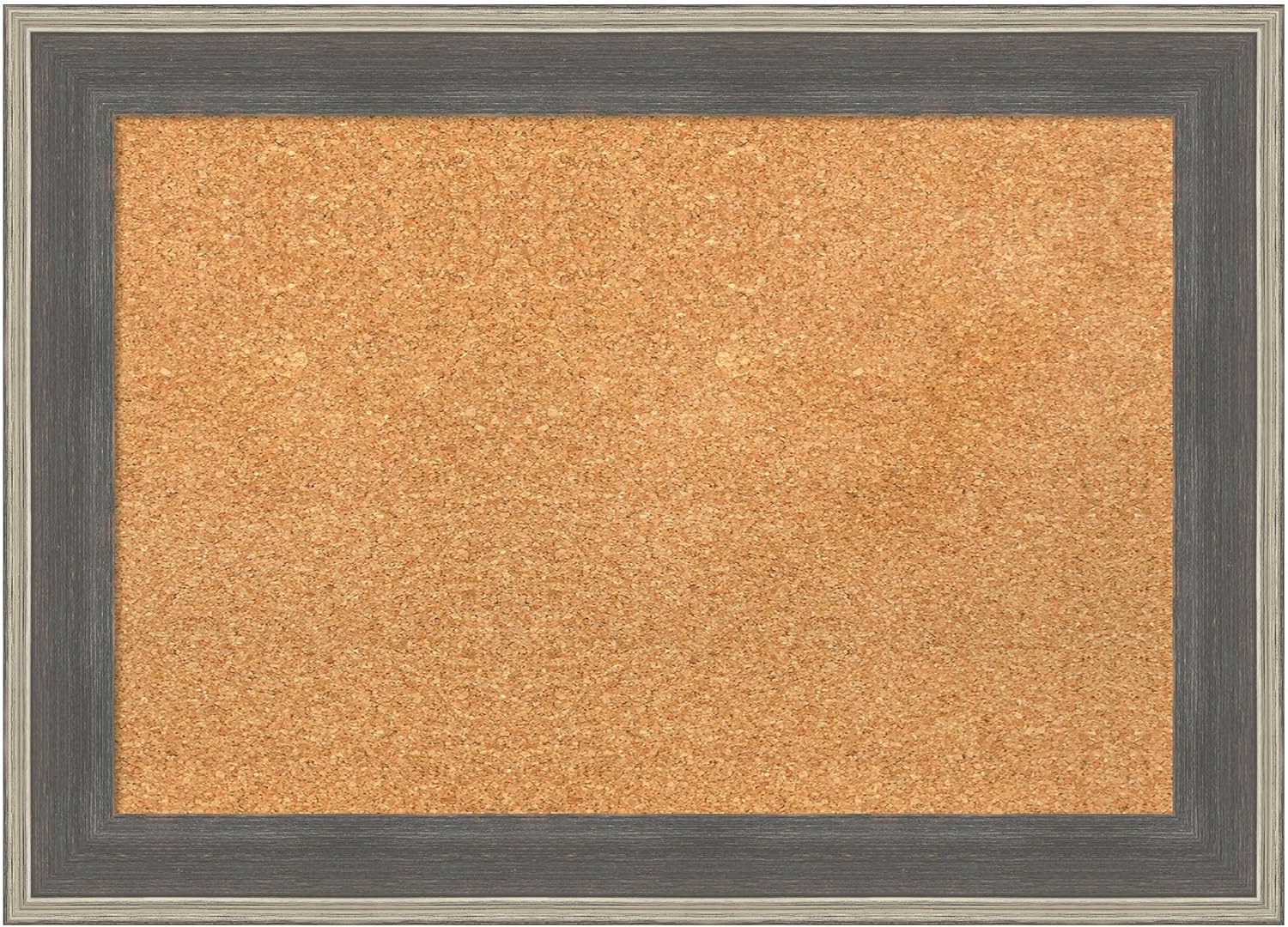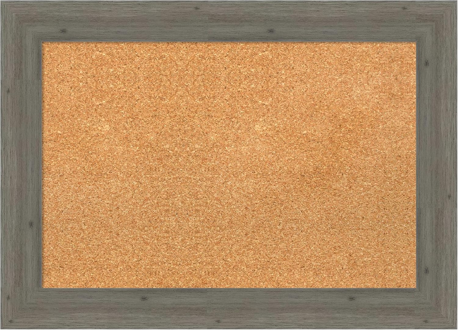 PRODUCT: Framed Cork Board; FRAME: Country Barnwood 3" Wood; FRAME STYLE: Rustic Farmhouse; FRAME FINISH: Distressed; FRAME COLOR: Grey; CORK COLOR: Natural; OUTER SIZE: 41 x 29 inches. The Country Barnwood frame is a rustic frame with scraped wood grain on a simple, flat surface with raised edges. The finish is weathered blue-grey with natural wood color. A beautifully framed corkboard turns everyday notes and messages into an ever-evolving work of art. It is a great way to add function to your home without sacrificing style. Organize to-dos, notes, calendars, coupons, or artwork in your kitchen, entryway, mudroom, or laundry room. Amanti Art is headquartered in Madison, WI, and provides high-quality, handmade framed art, mirrors, and organization boards for your home improvement projects. Our home decor products are made using traditional custom framing techniques that give you the kind of quality you would expect from your local frame shop. Because our focus is on workmanship, our products are used by architects, developers, interior designers, and homeowners alike to create beautiful and functional living spaces.