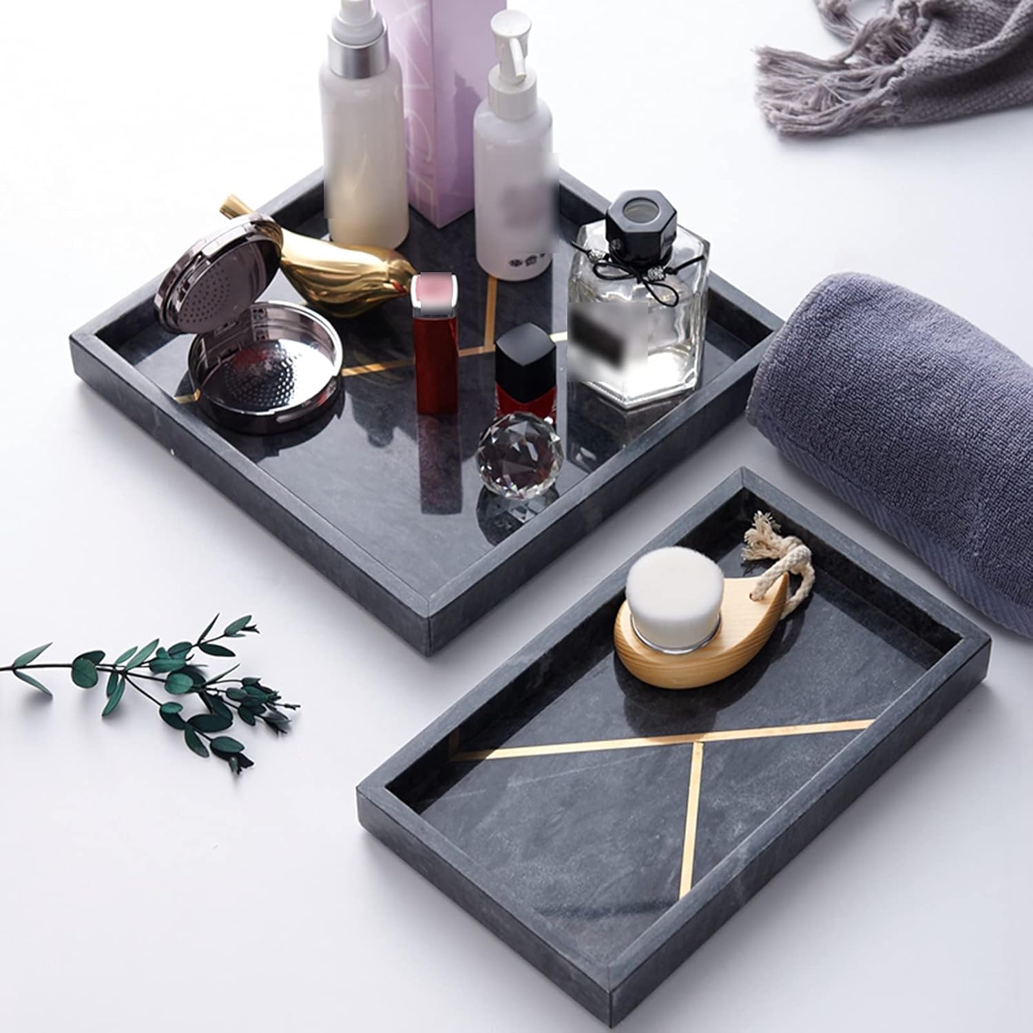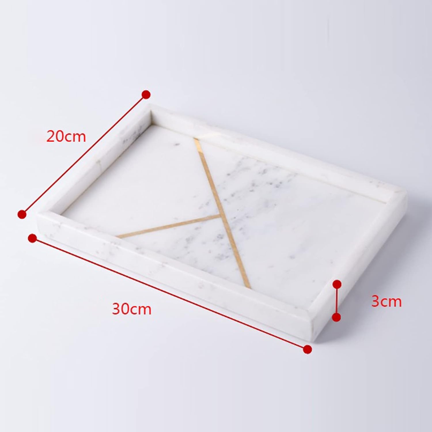 Material: MarbleSize: 30*20cmPerfect For Any Room: You can use it as a display tray for jewelry in the bedroom, store pens, paper clip in the office, store perfume, toothbrushes, and lotions in the bathroom, or use it as a tray for food in the kitchen, more uses waiting for you to discover.Multifunctional : This fashionable and functional marbling vanity tray can be used as serving tray jewellery tray, perfume tray, makeup tray, trinket tray or even coffee tray tea tray.An Ideal:A special and useful gift for your lover, families, friends that loves collecting Small objects and ornaments, and appreciates exclusive-looking home decor items.Note: Due to the handmade craftsmanship, the pattern on the tray you bought may be different from the picture, each tray is unique