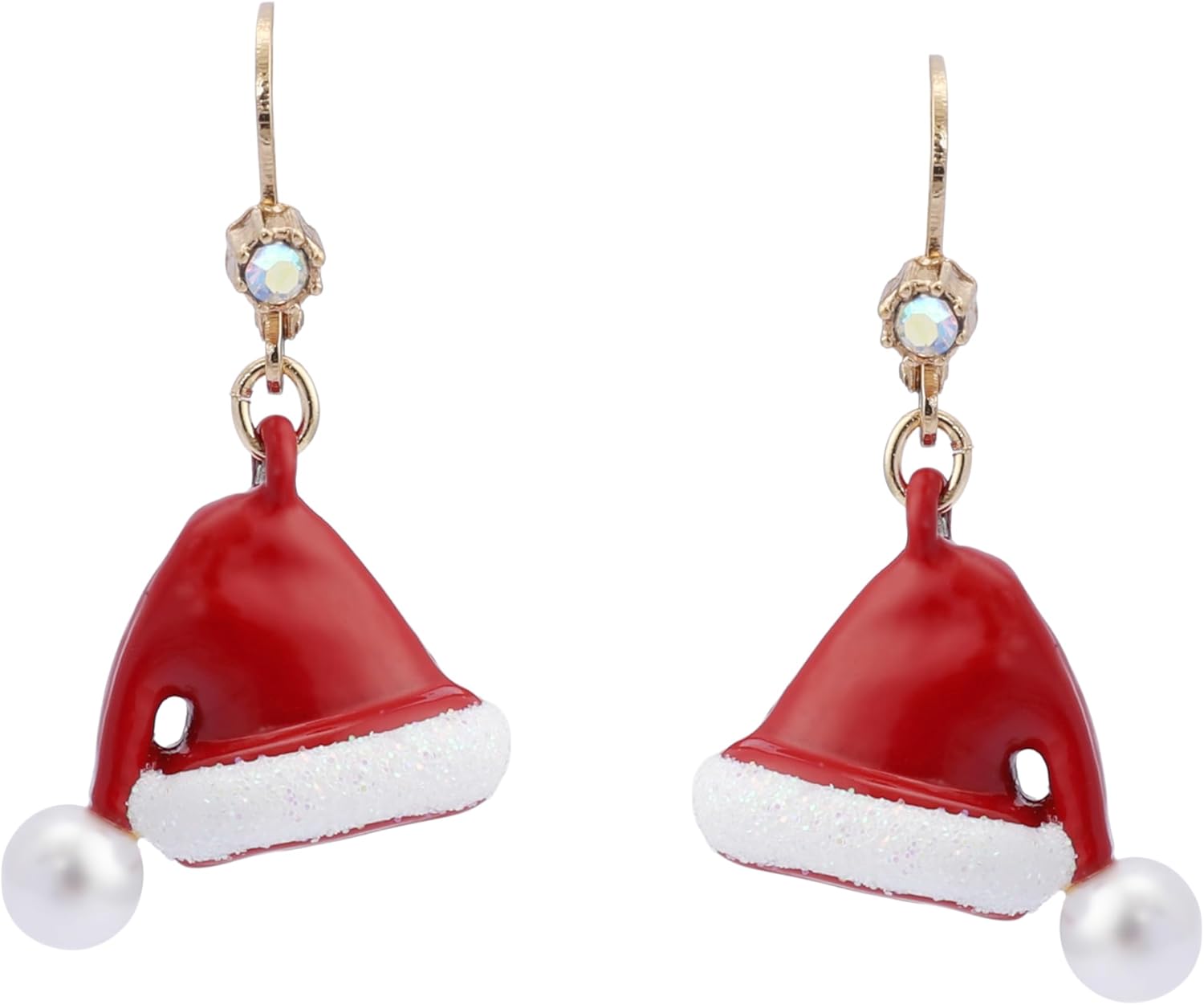 Add a festive touch to your holiday attire with these charming Santa hat drop earrings from Betsey Johnson. The whimsical design features classic red Santa hats adorned with shimmering white glitter trim, perfectly capturing the magic of the season. Set in gold-tone metal with a secure hinged closure, these delightful earrings bring just the right amount of Christmas cheer to any outfit. The dimensional design showcases the iconic Santa hat silhouette, complete with the signature pointed shape and fluffy white brim. These playful yet stylish accessories are ideal for holiday parties, festive gatherings, or simply spreading joy throughout the winter season. The lightweight construction ensures comfortable all-day wear, while the quality craftsmanship maintains the earrings' beauty through countless celebrations. Whether paired with your favorite holiday sweater or adding a spirited accent to a formal ensemble, these Santa hat earrings are sure to make a merry statement.