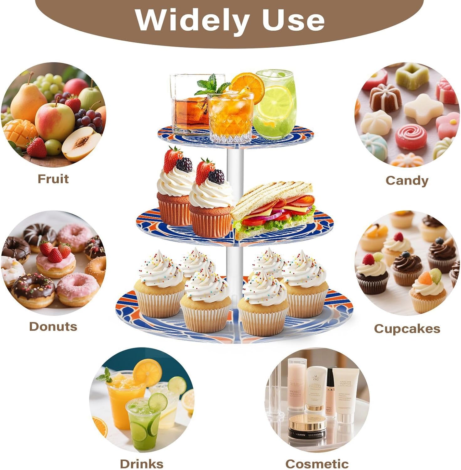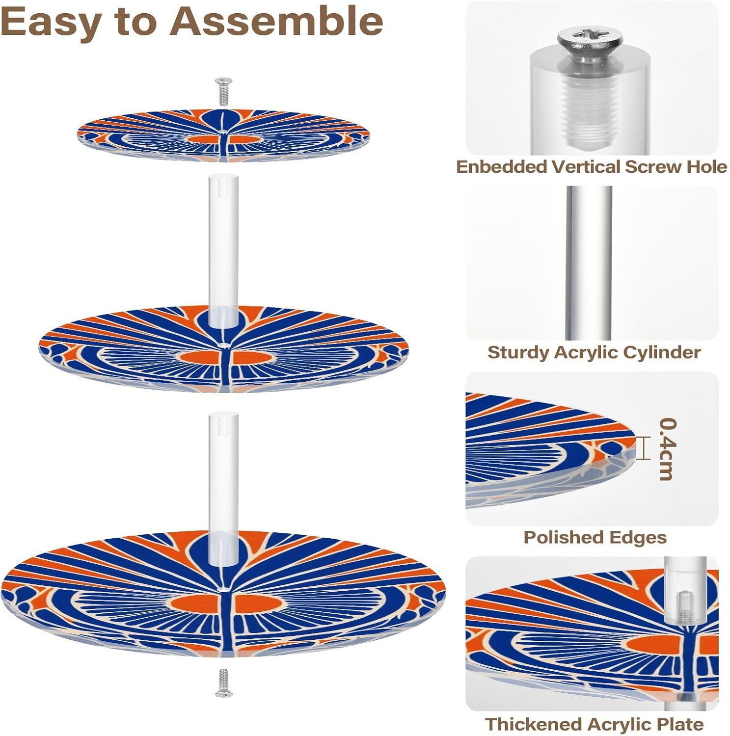 3 tiers round cupcake stand,acrylic cake tower stand holder macaron display rack cookie candy buffet desserts platter with non-slip and stable base for wedding, birthday, theme party. Due to the difference between different monitors,the picture may not reflect the actual color of the item,Please allow the slight color difference! We always doing our best to provide the best service and reliable products for every customer,Thank you very much! Have a good day!