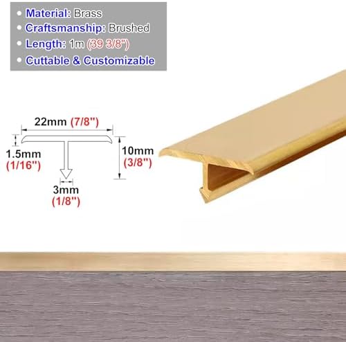 Transform your living space with our versatile floor edge trim bar, expertly designed to blend convenience and style. This trim is perfect for enhancing the aesthetic of any room, whether it's your living room, kitchen, or hallway. Crafted from durable metal brass, it not only adds a touch of elegance but also ensures long-lasting performance. **Specifications:** - **Material:** Metal Brass - **Length:** 100cm (39 3/8 inches) - **Load Capacity:** 250kg (550lbs) - **Customization:** Yes - **Cuttable:** Yes **Available Sizes:** - 4x6mm (0.16x0.24 inches) - 5x7mm (0.2x0.28 inches) - 5x12mm (0.2x0.47 inches) - 5x15mm (0.2x0.59 inches) - 5x20mm (0.2x0.79 inches) - 6x5.5mm (0.24x0.22 inches) - 8x5mm (0.31x0.2 inches) - 10x12mm (0.39x0.47 inches) - 10x16mm (0.39x0.63 inches) - 12x6mm (0.47x0.25 inches) - 15x7mm (0.59x0.28 inches) - 15x10mm (0.59x0.39 inches) - 20x7mm (0.79x0.28 inches) - 22x10mm (0.87x0.39 inches) - 35x10mm (1.38x0.39 inches) **Features:** - Durable brass construction for a long-lasting solution. - Smoothly connects similar flooring types, enhancing the visual flow of your space. - Quick and easy to install; can be customized to your desired length. - Low maintenance and easy to clean, ideal for everyday use. - Effectively covers seams and protects tile or flooring edges. - Serves as a threshold divider, reducing the risk of trips and falls. Elevate your home’s interior with our floor edge trim bar and experience the perfect blend of form and function. Please note that color may vary slightly due to lighting and screen differences, and dimensions may have minor deviations from manual measurements. Thank you for your understanding.