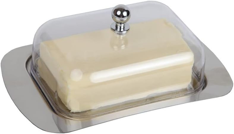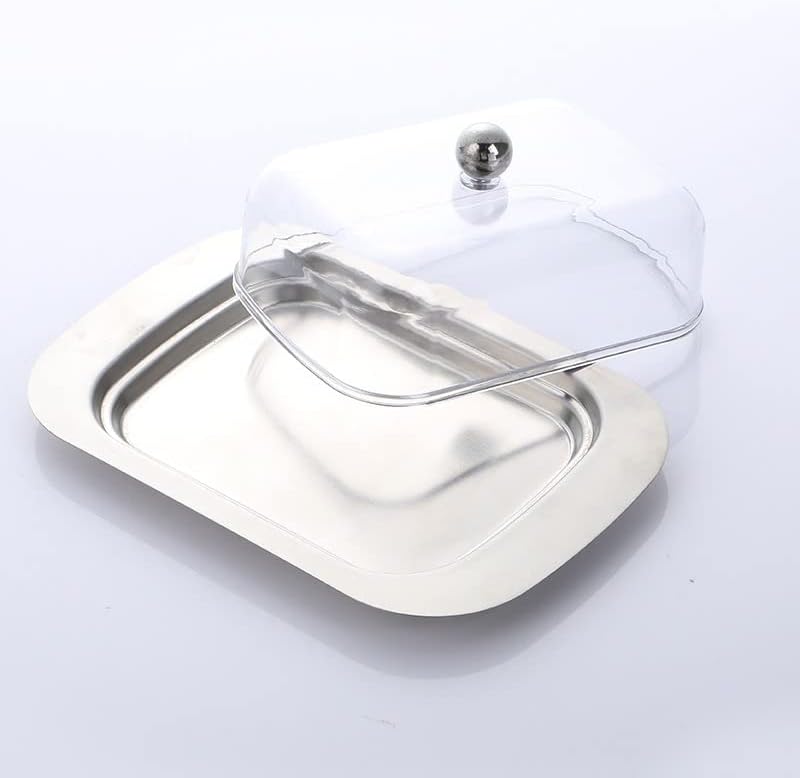 Product Name: Butter dishMaterial: premium stainless steel and acrylicSize: 18.5x12.2x6.8CMNotes:1. Before buying, please check the color and size.2. Product photos do not include products other than products.3. Due to different monitors, there may be slight color difference, please understand.4. The above data is for reference only, the size is manually measured, the error is 1-3 cm, please understand, thank you.5. If you find any problems with our products, please feel free to contact us via email, we will solve this problem as soon as possible.6. Welcome to share and feedback to provide you with better services and products.7. Thank you for visiting our shop, click to enter this shop, there will be many products for your reference.This butter pan is perfect for everyday use as its durable material is very easy to clean.
