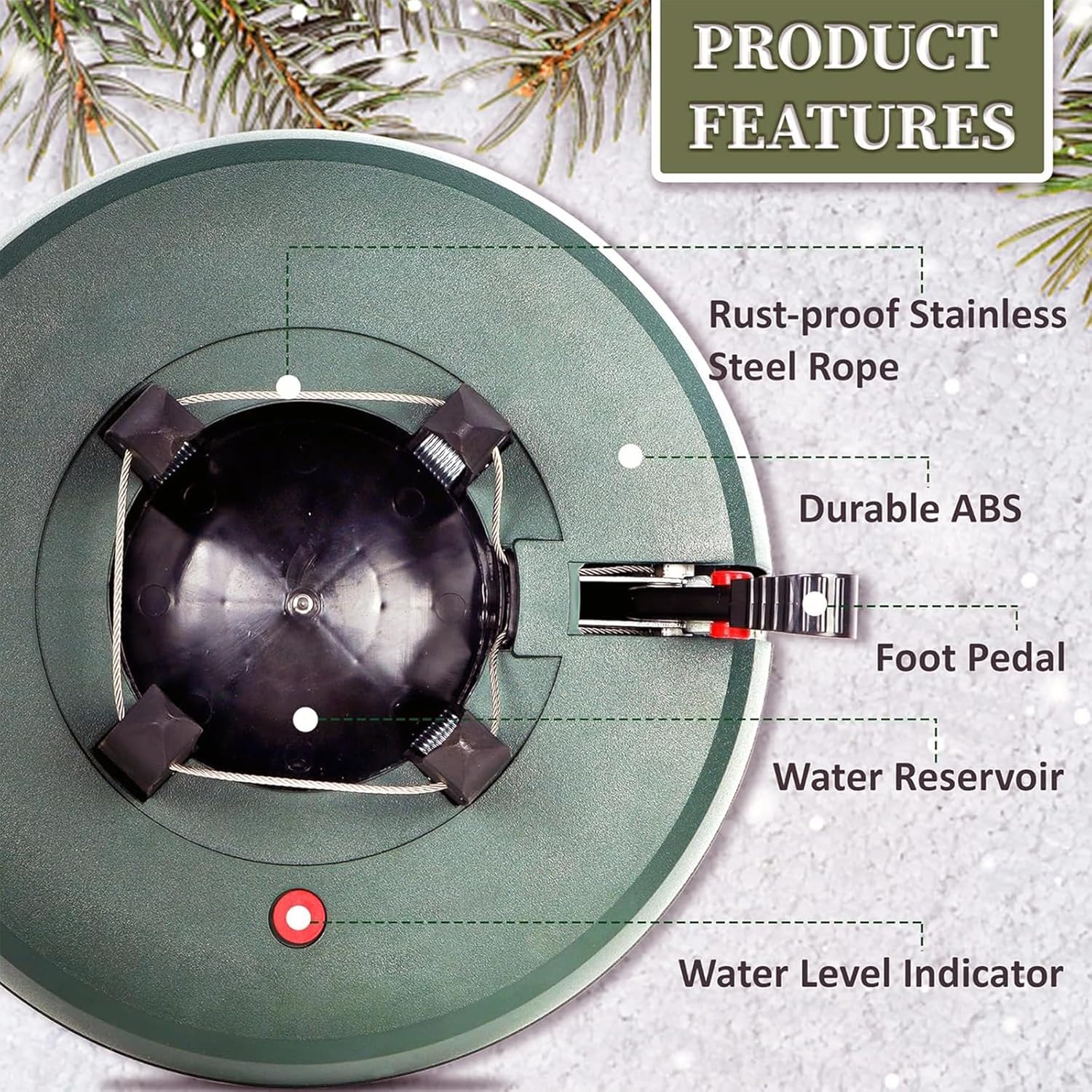 Specifications: Product Name: Automatic Christmas Tree Stand Product diameter: 34/37cm Installation tree diameter: 3~ 12cm Reservoir capacity: 3.1/3 L Installation tree height: 2.2/2 Packaging: 1 * Christmas tree base