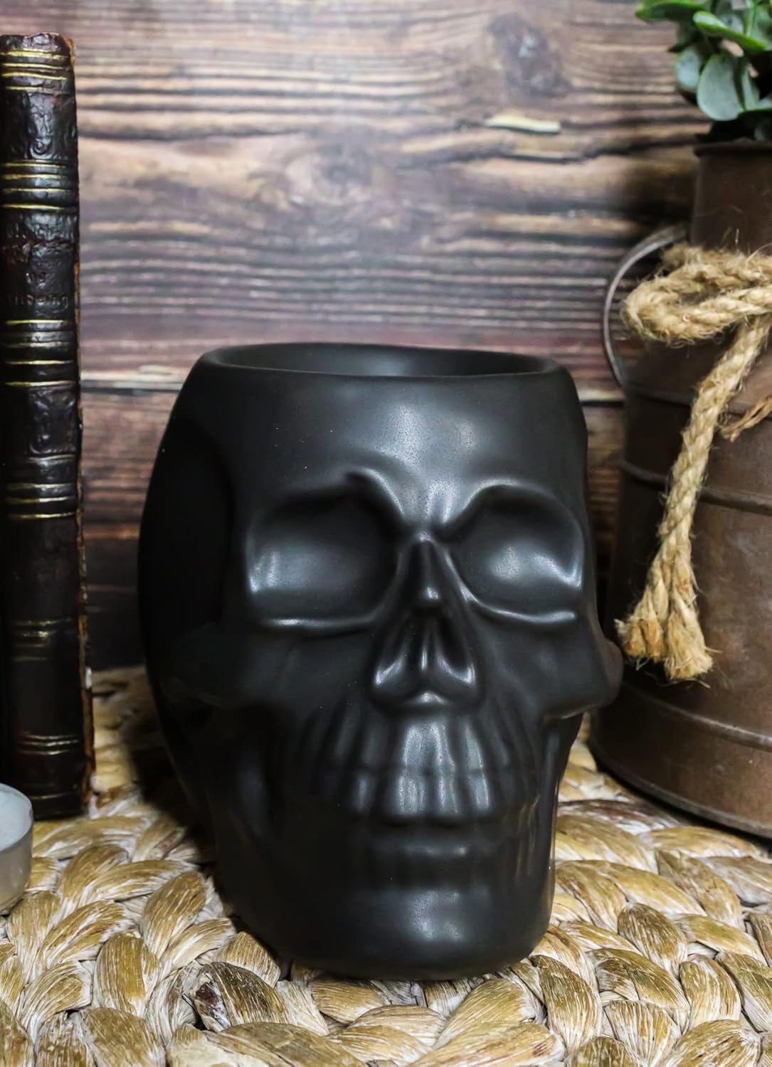 Ebros Gift Alchemy Fantasy Macabre Gothic Skull Skeleton Ceramic Votive Candle Essential Oil Tart Wax Herbs Warmer Holder Sculpture Home Aroma Fragrance Accessory (Matte Black and White Set of 2)
