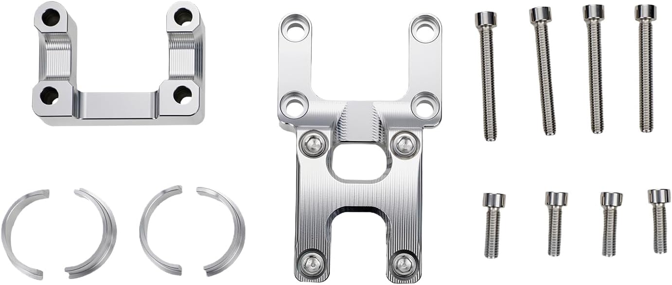 Features: FITMENT – Designed for Sur Ron Light Bee S / X / LBX / X260 / X160, this 28mm handlebar mount clamp riser offers a precise sur ron direct mount replacement for the stock stem. A must-have upgrade for riders seeking reliable Surron LBX accessories in the powersports-handlebar-risers category. Premium Material – CNC-machined from high-strength 6061-T6 aluminum, this Sur ron riser delivers excellent durability and tensile strength while staying lightweight. A dependable choice for riders wanting long-lasting sur ron handlebar mount components. Integrated Design – The one-piece clamp structure provides a secure grip, minimizes handlebar movement, and boosts riding stability. This reinforced Sur ron bar clamp design enhances control on rough trails and aggressive off-road terrain. Lightweight Handling – Engineered to reduce unnecessary mass without compromising strength, these Surron risers improve maneuverability and responsiveness — an ideal upgrade in the sur ron accessories lineup for better overall handling. Quick Installation – Simple structure and direct stock replacement. Install using the included 4 screws and you're ready to ride. A fast, hassle-free solution for riders upgrading to a Surron direct mount stem. Specification: Color: Black / Silver (Depending on listing variation) Material: 6061-T6 Aluminum Alloy Fitment: Sur Ron Light Bee S / X / LBX / X260 / X160 (28mm handlebars) Package Includes: 1* Handlebar Mount Clamp Riser 4* Mounting Screws Installation Instruction NOT Included.