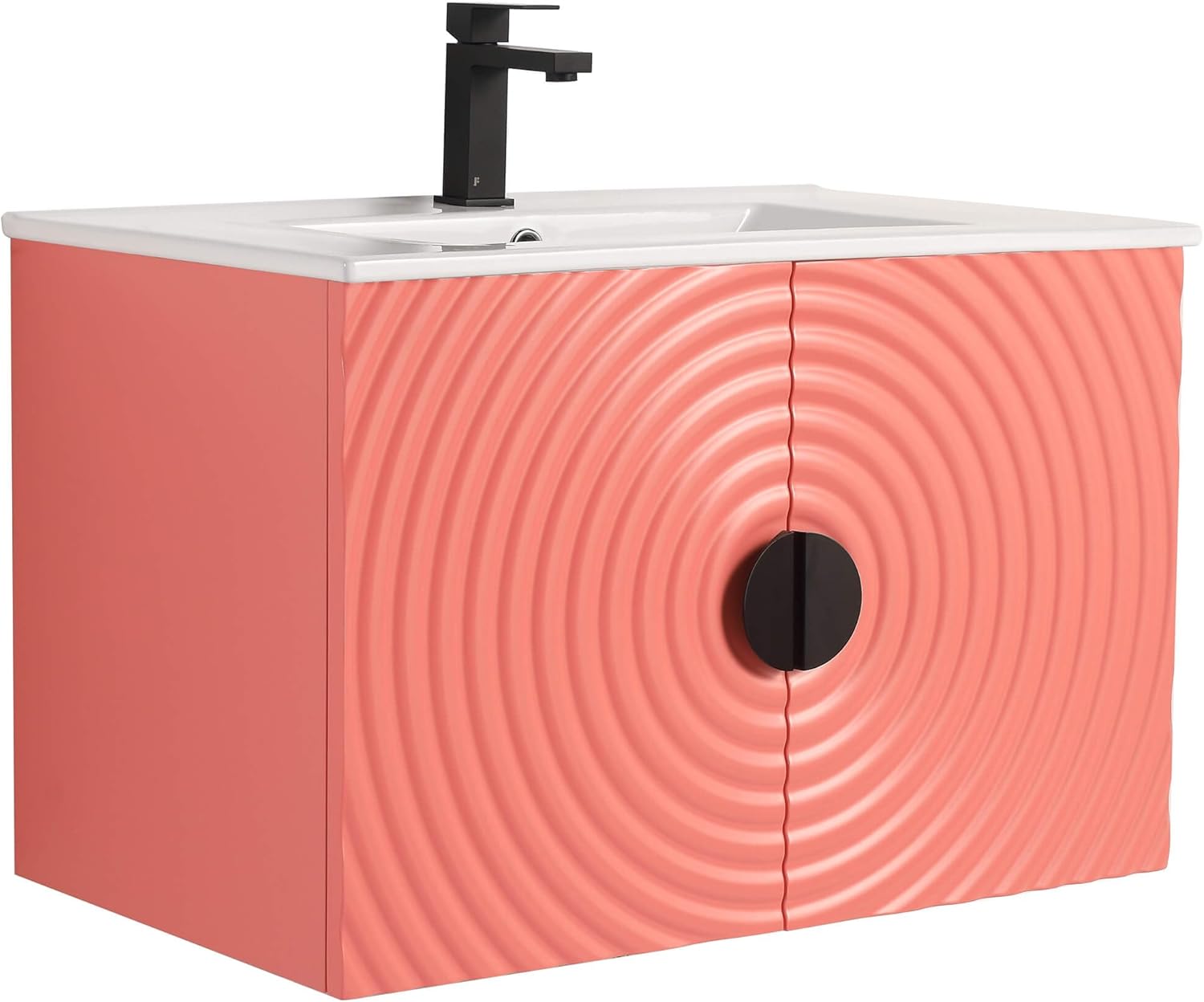 Transform your bathroom with the Fine Fixtures Pellabay Modern 24 Inch Bathroom Vanity with Sink—a compact yet stunning centerpiece for modern and transitional spaces. Designed with artistic fluted doors and finished in a unique coral pink, this bathroom vanity with sink 24 inch brings personality and charm to any home.Crafted for functionality and visual appeal, this freestanding bathroom sink cabinet delivers ample storage and a clean aesthetic, making it the ideal choice for those seeking a 24 inch vanity with sink and countertop that doesn’t overwhelm a room. Whether you need a sleek option for a guest bathroom or a stylish update for your main space, this unit fits effortlessly.Every piece in the Pellabay collection reflects Fine Fixtures' commitment to craftsmanship and quality. This coral pink bathroom vanity complements other sizes such as the 30 inch bathroom vanity with sink and even integrates well with modern accessories and lavamanos de baño modernos setups.From urban condos to classic homes, this versatile bathroom cabinet serves as more than a fixture—it’s a design statement. Choose the Fine Fixtures Pellabay 24 inch bathroom vanity with sink for enduring beauty, modern efficiency, and a refreshingly unique bathroom upgrade.