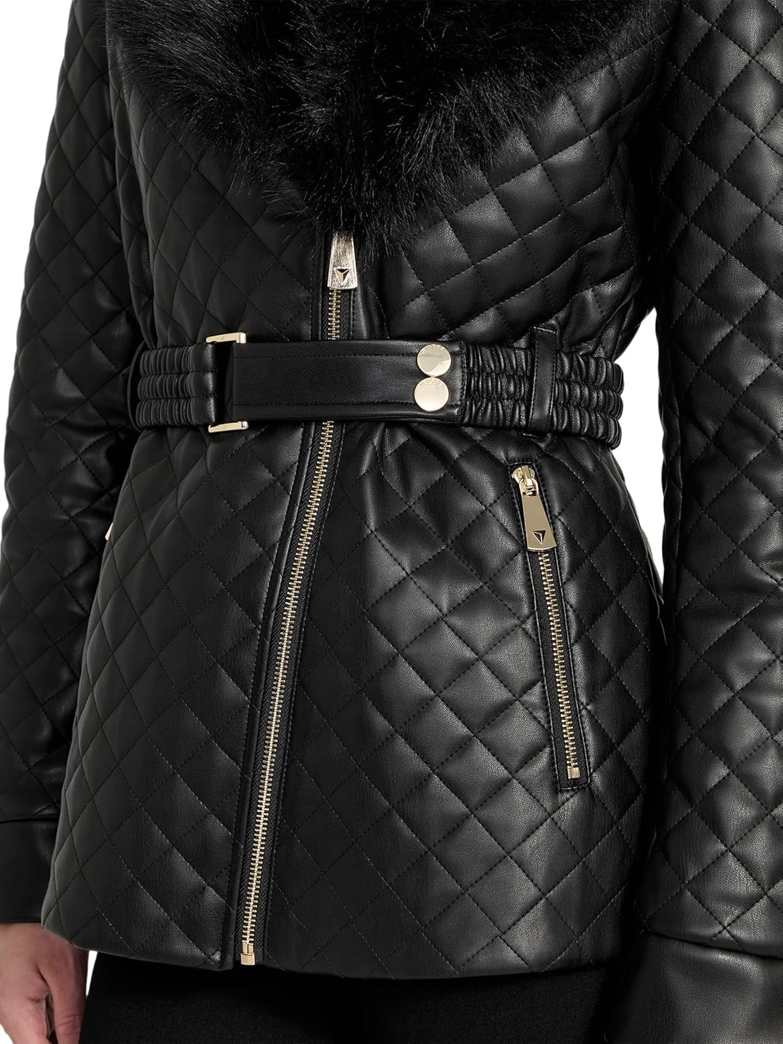 | Style | Oprah Fur Collar Diamond Faux Leather Jacket |