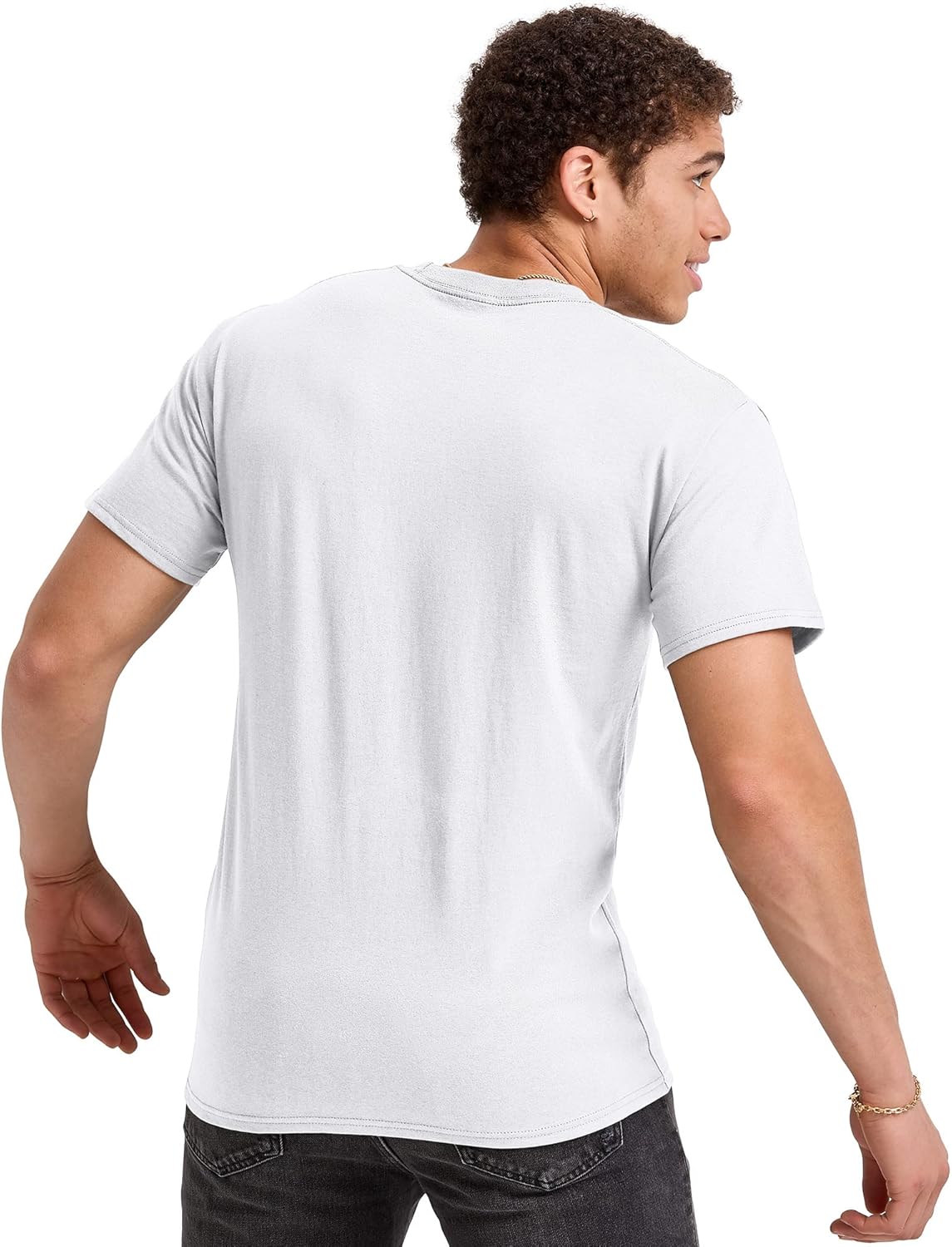 Crafted for quality and designed for comfort, this Hanes® Essentials men's pocket t-shirt boasts a timeless design that never goes out of style. Made from 100% cotton or a cotton-rich blend depending on the color, this classic men's tee features a ribbed crew neckline, sturdy double-needle stitched short sleeves, and a front patch pocket at the left chest for added style. Perfect for any season, this short-sleeve tee will become your new go-to style. Layer this full-cut t-shirt or wear it alone for an easy, casual-cool look - it's now available in a convenient pack of three so you'll never be without a clean Hanes tee.
