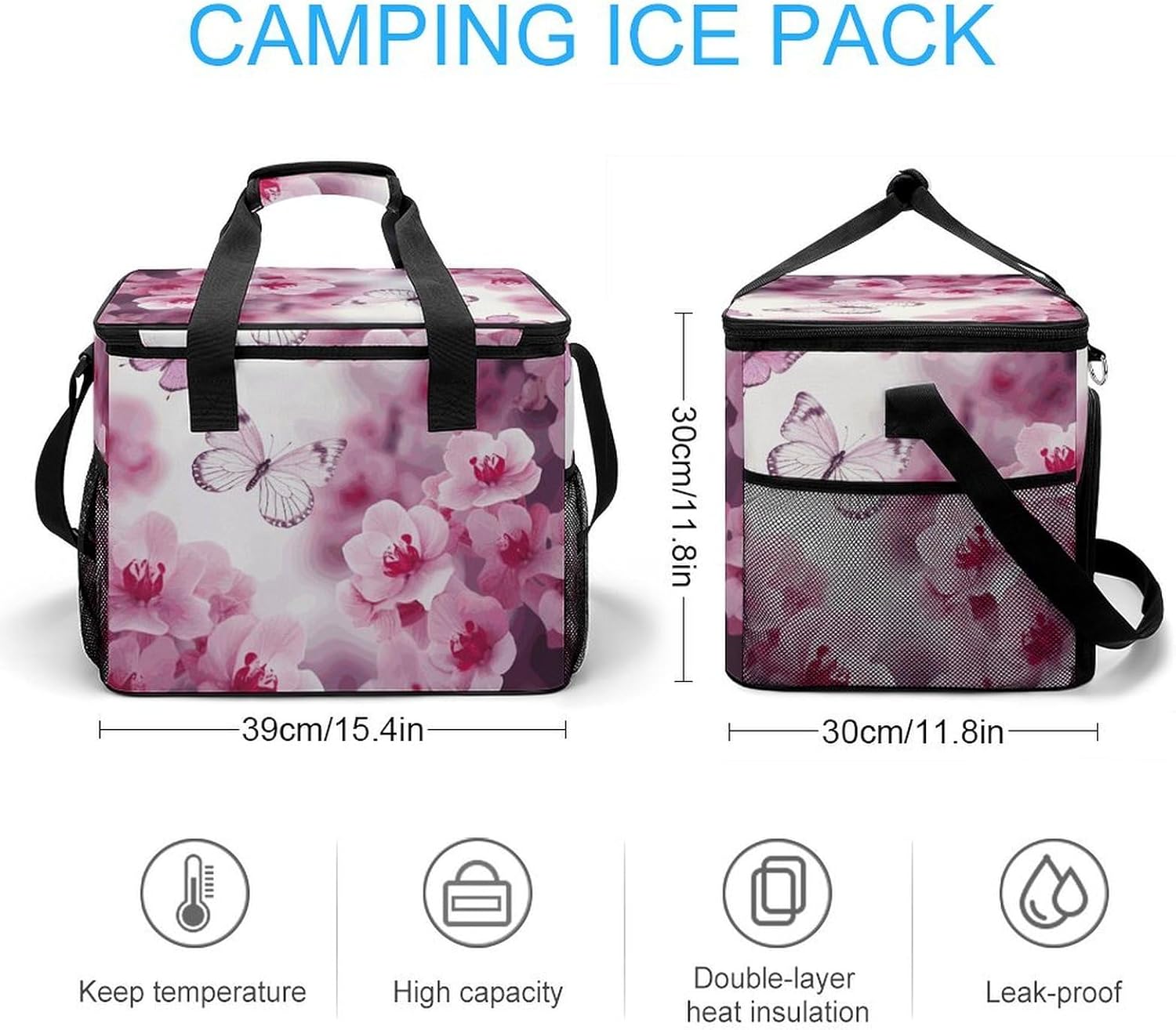 Take Your Meals Anywhere with Flowers And Butterfly Grocery BagsFood Container Carrier Oxford Fabric Picnic Bag Heat Retaining Food Bag Camping Cooler BBQ Accessories Cute Picnic Bag with Pockets Insulated Food Bag for Work Insulated Lunch Tote Bag Camping BagTemperature Control That WorksThe upgraded aluminum foil lining creates an effective thermal barrier. Your drinks stay refreshingly cold, and your hot dishes maintain their warmth for hours. No more lukewarm meals during outdoor outings.Thoughtful Storage DesignTwo side mesh pockets - Perfect for water bottles or umbrellasFront zippered pocket - Keeps keys, phone, or condiments organizedInternal mesh pocket - Stores utensils, napkins, and small essentialsMain compartment - Spacious enough for food containers and snacksBuilt for Daily AdventuresConstructed from high-density oxford fabric with reinforced stitching at stress points. The double zippers are sturdy and smooth-operating. Reinforced handles let you carry heavy loads with confidence.Carry Your WayHandles for quick grabbingStands upright for easy packing and accessPerfect For:Picnics in the parkBeach days and pool partiesCamping and hiking tripsOutdoor concerts and festivalsDaily work lunchesGym and fitness classesRoad trips and travelGrocery shoppingSpecifications:Dimensions: 15.4 x 11.8 x 11.8 inchesMaterial: High-density Oxford fabricLining: Aluminum foil (insulated)Closure: Sturdy double zippersPockets: 2 side mesh, 1 front zipper, 1 internal meshCare: Hand wash or machine wash, do not bleachNote: Food containers and utensils shown in images are not included.