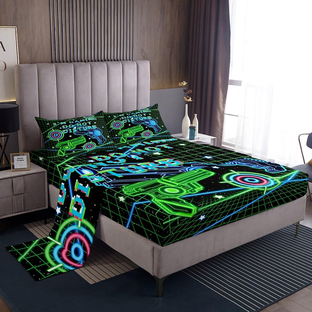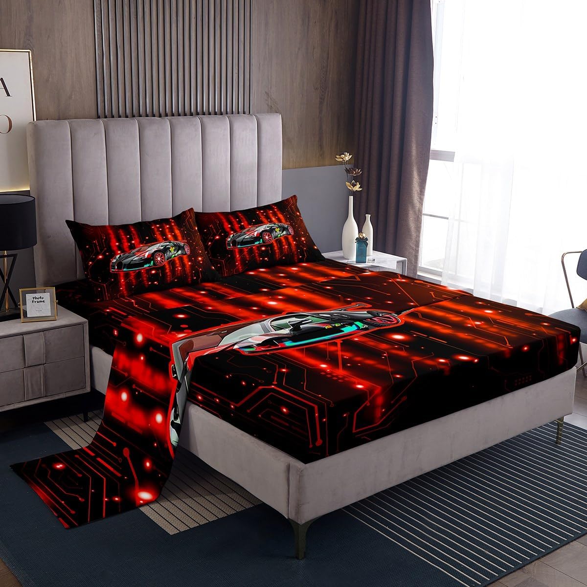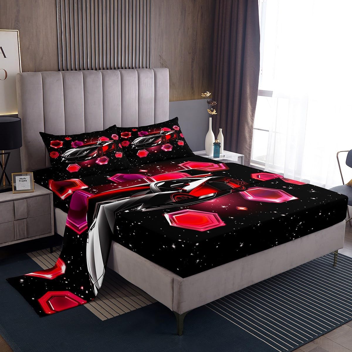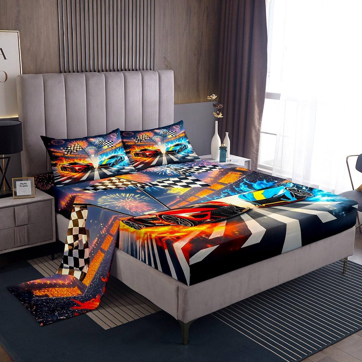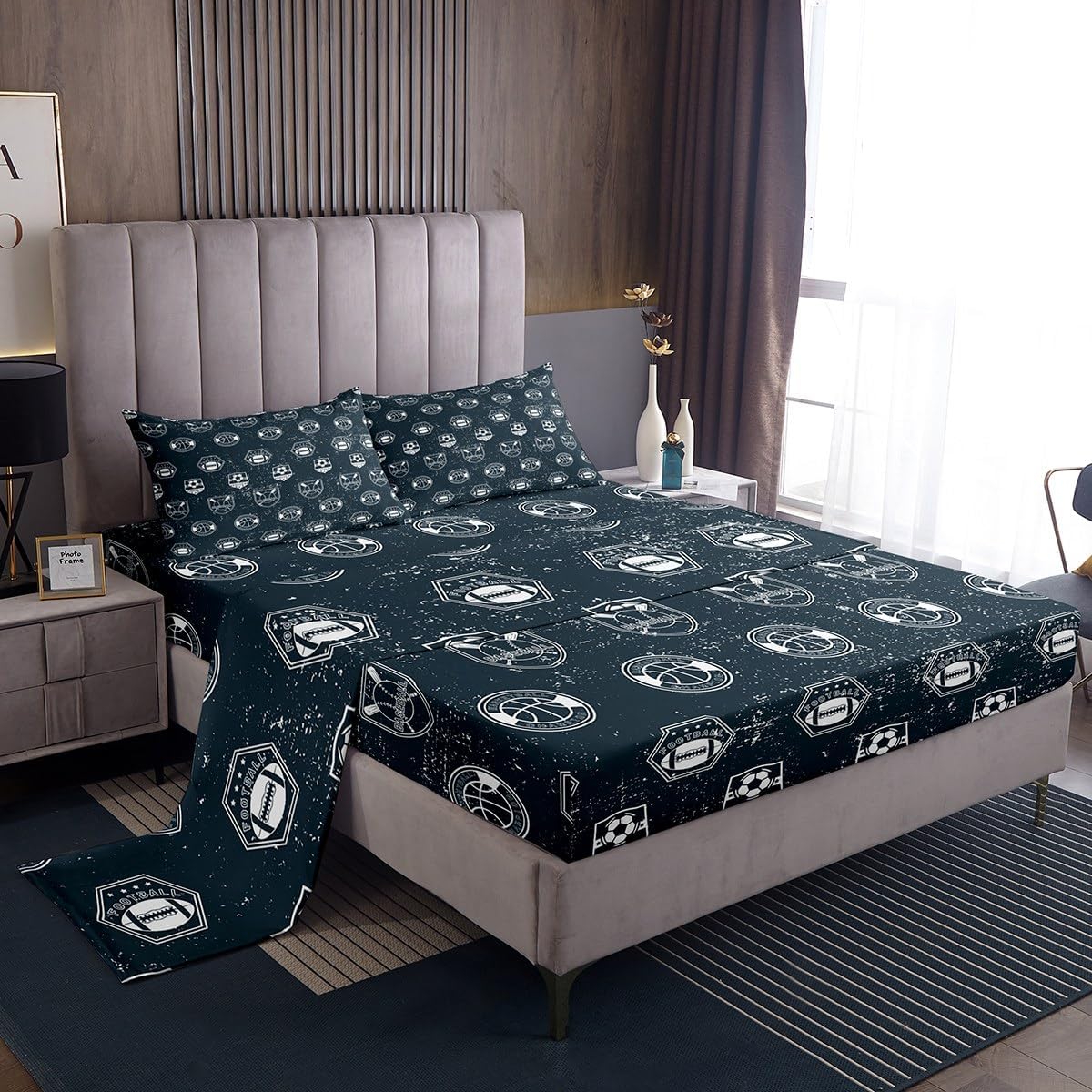 Our bed sheet is made of polyester fabric, lightweight and soft; stylish design is very suitable as room decoration for boys and girls; keep warm in winter and cool in summer; create a comfortable sleeping environment to make you fall asleep all night Range of size 1 twin fitted sheet 39 inch x 75 inch x 16 inch and 1 twin flat sheet 66 inch x 96 inch and 1 standard pillowcase 20 inch x 30 inch 1 full fitted sheet 54 inch x 75 inch x 16 inch and 1 full flat sheet 81 inch x 96 inch and 2 standard pillowcase 20 inch x 30 inch 1 queen fitted sheet 60 inch x 80 inch x 16 inch and 1 queen flat sheet 90 inch x 102 inch and 2 standard pillowcase 20 inch x 30 inch 1 king fitted sheet 78 inch x 80 inch x 16 inch and 1 king flat sheet 90 inch x 106 inch and 2 standard pillowcase 20 inch x 36 inch