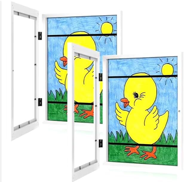 This 8.5 x 11 front-opening artwork display frame makes it easy to showcase and store kids’ drawings, school projects, photos, and certificates. The magnetic front opens from the top, allowing quick artwork changes without removing the frame from the wall. The deep storage design holds multiple pieces at once, keeping memories organized and protected. A clean white finish blends well with any room decor, making it ideal for bedrooms, playrooms, classrooms, and home offices.