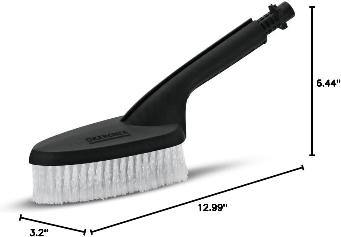 Standard Kärcher brush for pressure washers. Perfect for removing stubborn dirt and cleaning a wide variety of firm surfaces, from cars and caravans to windows and garden furniture. A pressure washer can make short work of a wide variety of cleaning tasks – from removing dirt and algae from decking to tackling delicate jobs like washing cars and windows. This slim Kärcher brush attachment makes these tasks even easier. The brush is tough enough to get rid of stubborn dirt but soft enough to use on a wide range of different surfaces. With its ergonomically designed handle, you can use the brush comfortably for bigger jobs and over long periods of time, while the simple bayonet fitting makes it easy to attach and remove. This is particularly handy if a job requires multiple attachments, or you need to combine brushwork with just the pressure jet or spray lance. The soft, white bristles are ideal for delicate surfaces such as glass and car exteriors, and because the brush can be used at low pressure, you can also use suitable detergents for an even more sparkling finish. Whether for handling tougher jobs like cleaning stubborn dirt from garden furniture or everyday maintenance, the Kärcher pressure washer brush can help you achieve the results you deserve. Specifications Technical data Weight (kg) 0.2 Weight incl. packaging (kg) 0.2 Dimensions (L × W × H) (mm) 333 x 82 x 164 Weight (kg) 0.2 Weight incl. packaging (kg) 0.2 Dimensions (L × W × H) (mm) 333 x 82 x 164 Compatible machines K 2 Compact K 2 Compact Car & Home K 2 Compact Home K 2 Power Control K 2 Power Control Home K 3 Compact K 3 Compact Home K 3 Home K 3 Power Control K 3 Premium Power Control Home K 4 Compact K 4 Compact UM K 4 Power Control K 4 Power Control Car & Home K 4 Power Control Home K 4 Premium Power Control Car & Home K 5 Compact K 5 Power Control K 5 Power Control Car & Home K 5 Premium Smart Control Home K 7 Compact K 7 Premium Smart Control Home K 2 Compact Car & Home K 2 Full Control K 2 Full Control Home K 2 Premium Full Control Car & Home K 2.850 K 4 Car K 4 Full Control K 4 Full Control Car & Home K 4 Full Control Home K 4 Premium Full Control Car & Home K 4 Premium Full Control Home K 5 Full Control Plus K 5 Premium Full Control Plus K 5 Premium Full Control Plus Home K 7 Premium Full Control Plus Home K 7.20M *GB K2 Compact Home K2 Home K2 Premium Home K4 K4 Home K4 Premium Home K4 Silent Home K5 Car & Home K5 Full Control Home K5 Premium Ecologic Home K5 Premium Full Control Home K7 Premium Ecologic Home K7 Premium Full Control Home