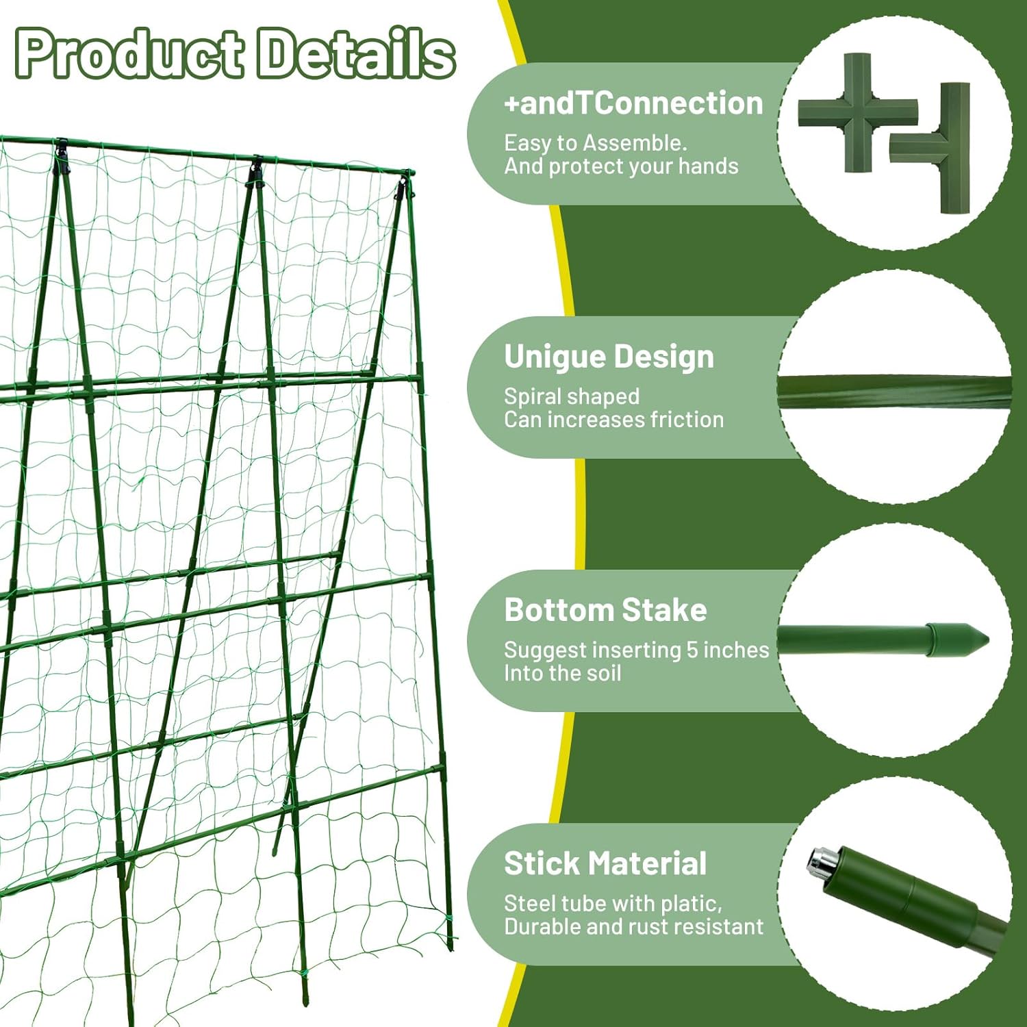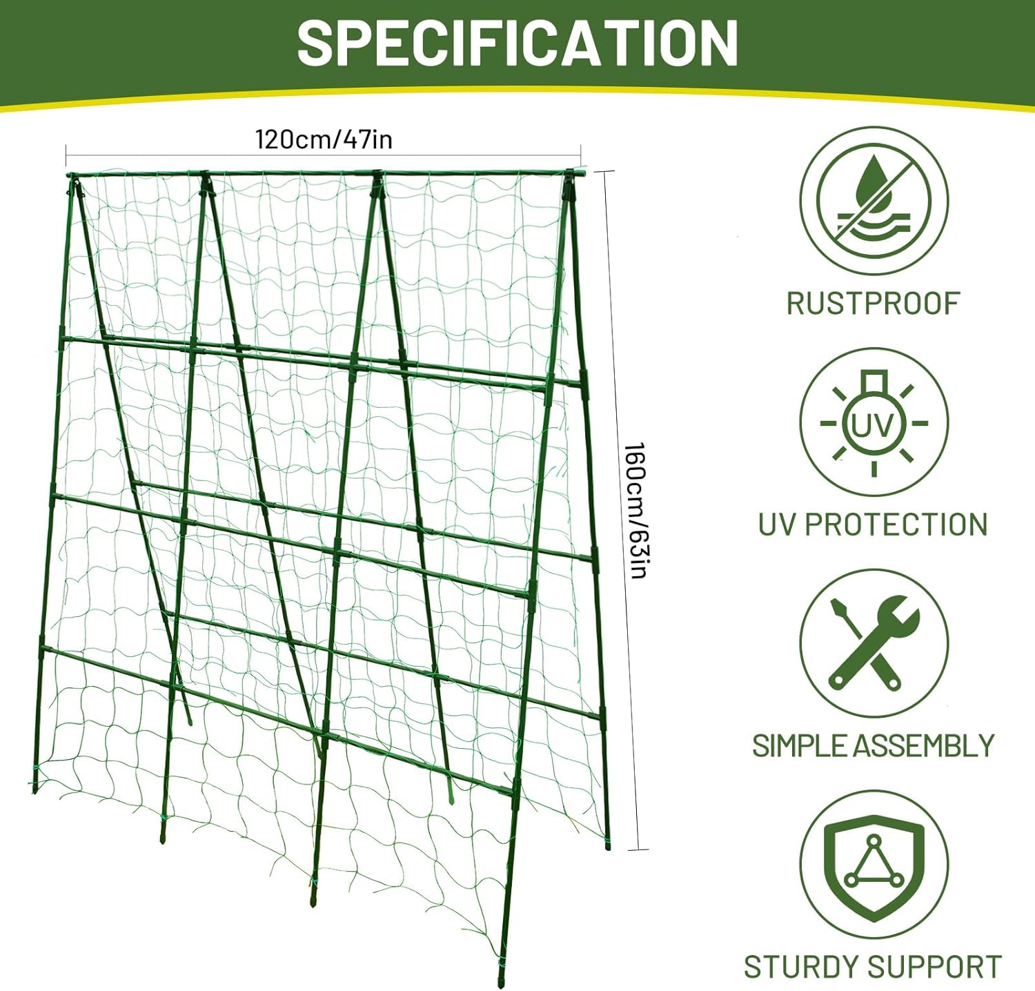 | Size | 47" W x 63" H - A Frame Trellis |