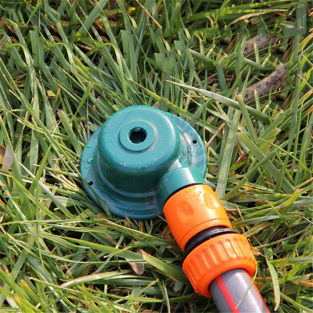 Multifunctional Lawn Sprinkler: Provides 80 PSI water pressure and 33 feet (about 10 meters) spray distance to provide the largest uniform sprinkler for your yard.Fully Adjustable Sprinkler: Adjust the sprinkler nozzle to spray in any direction to customize the sprinkler. The base of the sprinkler has been weighted to keep the device in place and ensure that it will not move around. Structure: Our sprinklers are made of zinc alloy material, and the surface is electroplated to prevent rust. This lawn sprinkler will provide long-lasting and worry-free performance.Save Time & Water: This sprinkler is convenient to use, it only takes a few seconds to set up. using water-saving technology to achieve a uniform water layer without overspraying.Sprinkler for Water Fun: These multifunctional lawn sprinklers can be used as a fun sprinkler set for children to enjoy water fun and cool in hot and sunny days.Nozzle size: 116*10*110MMMaterial: Zinc AlloySize: about 11x8x3.5cm/4.33x3.15x1.38inchColor: green: snailThe shape of the spray: the cone of the spray is sprayed to the sky, falling like a rain.Packing List:1*Sprinkler Nozzle (not include pipes)Note: Light shooting and different displays may cause the color of the item in the picture a little different from the real thing. The measurement allowed error is +/- 1-3cm.Due to manual measurement, please allow for a difference of 1-3 centimeters. Thank you for your understanding