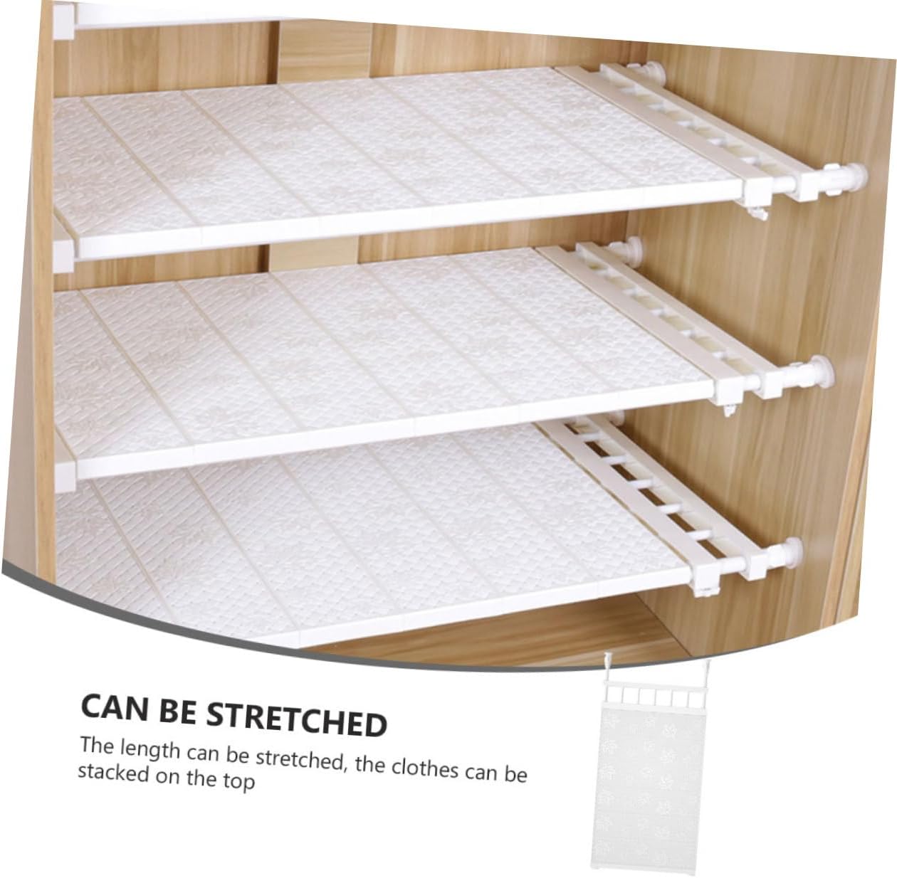 Package Include 1 x Storage Rack Characteristics - Material: Plastic Wardrobe Storage Rack. - Fine adjustment, strong support, create partition storage bracket for home Partition Rack - It is suitable for storage bracket in kitchen, bedroom and bathroom Retractable Shelf. - Practical design and punching , safe for wall and wardrobe installation Retractable Bracket. - The thickened partition, and the uneven wall can also be supported. Increase the friction, and the bearing capacity is stronger Bathroom Bracket. - Adoption of and reliable plastic, adjustable design, suitable for various storage needs Storage Rack.Goods DescriptionRetractable Shelf A storage rack with strong bearing capacity, which can keep all items organized and save space.Retractable Stand Our product works great for keeping your and let you wardrobe more out of some space to put something else