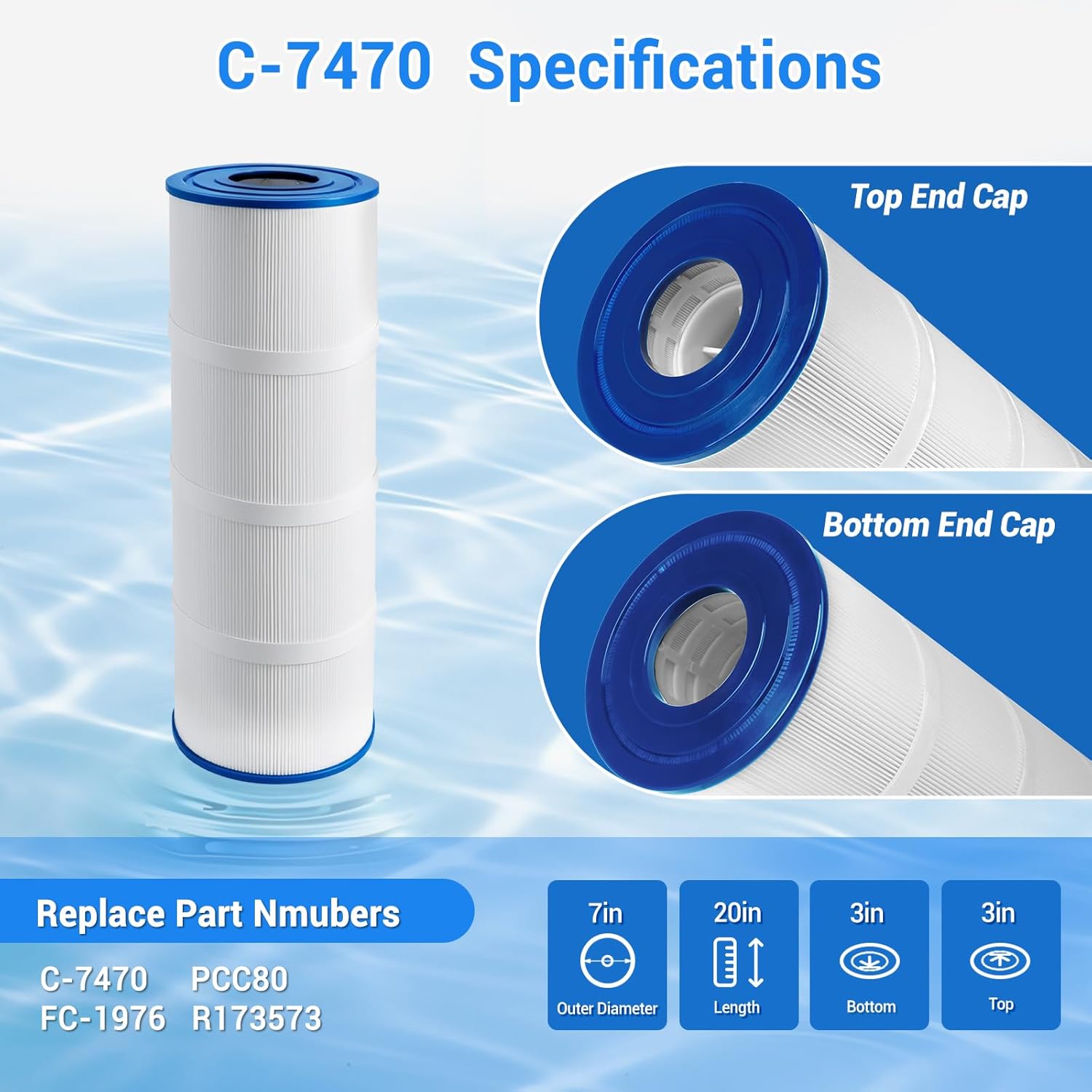 Pool & Spa Filter Cartridge 4-pk Replaces Pen tair CCP320, PLFPCC80, Ultral-A5, Unicel C-7470, R173573, Filbur FC-1976, 178580, 817-0081, Clean and Clear Plus 320, 80 sq ft Pleated Fabric Filter Media