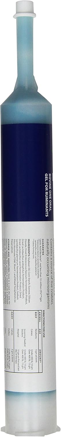 Probios Bovine One Oral Gel for Ruminants and acrid; and cent; is a stabilized source of lactic acid bacteria. Provide to any ruminant including beef cows, dairy cows, sheep and goats at times of stress, such as ration change, birth, weaning, shipping, weather changes and following antibiotic treatment. Lactic acid bacteria supports normal appetite and digestion. Benefits Probios Bovine One Oral Gel for Ruminants is a source of stabilized live direct fed microbial. Since one direct fed microbial alone cannot provide all the required health benefits, it contains four species of live naturally occurring lactic acid bacteria including three species of Lactobacillus (acidophilus, plantarum, case) along with Enterococcus francium. Probios Bovine One Oral Gel for Ruminants features the unique microbial PS strains for unrivaled benefits and helps maintain proper gut flora in the digestive tract. Probios Bovine One Oral Gel for Ruminants helps support proper digestion and bowel health in all classes of ruminants in a convenient paste. How it works: Since one direct fed microbial alone cannot provide all the required health benefits, Probios Bovine One Oral Gel for Ruminants contains four species of live naturally occurring lactic acid bacteria including three species of Lactobacillus (acidophilus, plantarum, case) along with Enterococcus francium. Live Lactobacillus acidophilus, Lactobacillus plantarum, Lactobacillus case and Enterococcus francium all ferment lactose into lactic acid. As direct fed microbial, they promote breakdown and assimilation of nutrients while helping to maintain proper gut flora.