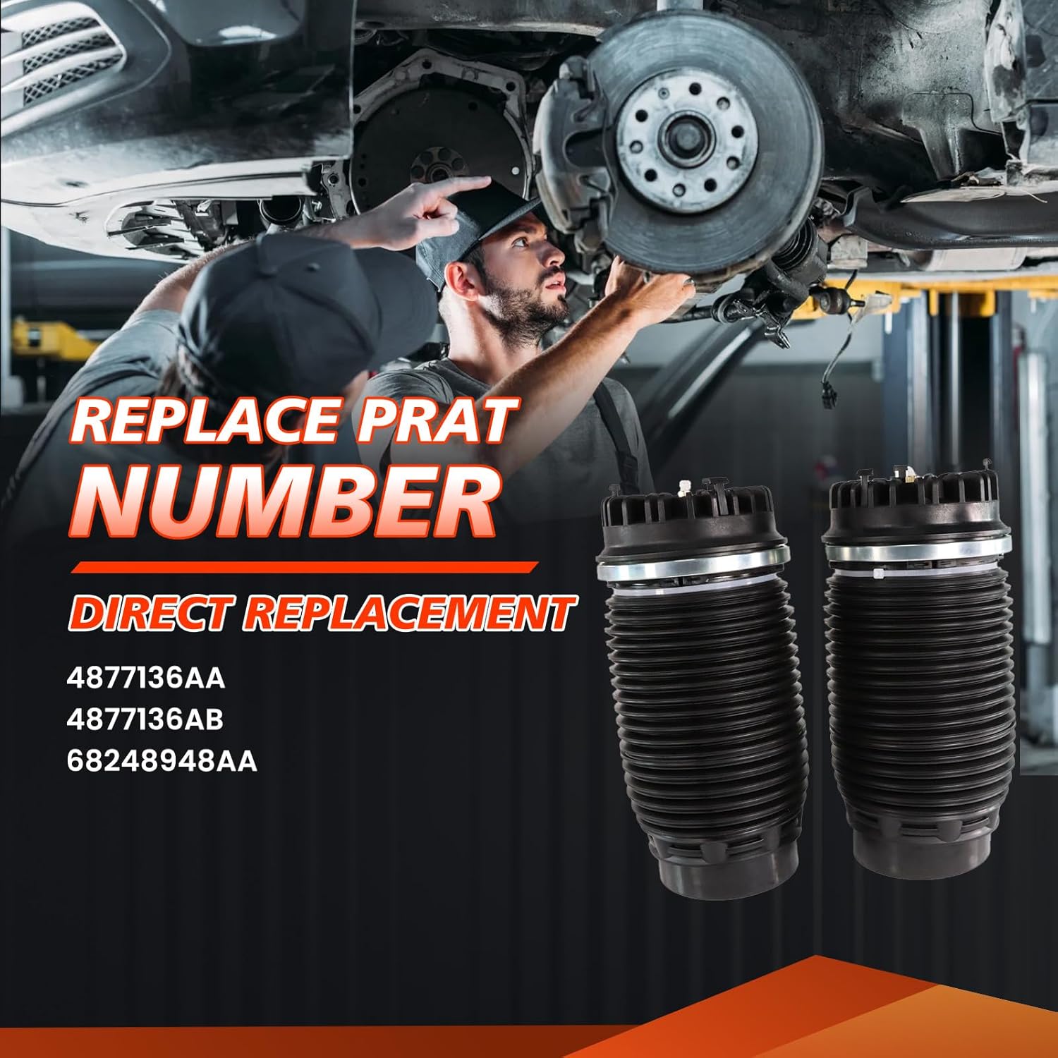 YDMON Rear Air Spring Suspension Bag, Compatible with Ram 1500 2013-2018 Ram 1500 Classic 2019 2020 3.0L 3.6L, Automotive Left&Right Air Shock Absorbers Replace Part 4877136AA 4877136AB 68248948AAPowerful Adjustment Performance The air shock absorber spring bags can be adjusted according to different road conditions and driving needs, providing a more comfortable or sportier suspension setting.Better Smoothness YDMON rear air spring suspension bag has excellent smoothness performance, which can effectively absorb bumps and vibrations on the road, reduce the ups and downs of the body and provide a smoother driving experience.Reliability and Safety Our products are made of durable, high-strength materials and comply with safety standards, ensuring their stability and durability under various conditions and ensuring driving safety.Part Number:4877136AA 4877136AB 68248948AA 04877136AA 04877136ABCompatible with Models:for 2020 Ram 1500 Classic 3.6L V6 - Flex, 5.7L V8 - Gasfor 2019 Ram 1500 Classic 3.0L V6 - Diesel, 3.6L V6 - Flex, 5.7L V8 - Gasfor 2014 - 2018 Ram 1500 3.0L V6 - Diesel, 3.6L V6 - Flex, 5.7L V8 - Gasfor 2013 Ram 1500 3.6L V6 - Flex, 4.7L V8 - Flex, 5.7L V8 - GasProduct Condition: Brand New& High QuailtyPackage Include: 2* Air Spring Suspension BagNote: We are committed to providing professional consultation and support to ensure you select the most suitable parts. Our dedicated team is ready to assist you in resolving any issues. Please read our descriptions carefully to ensure that the model matches your requirements, preventing any incorrect orders that may waste your valuable time.