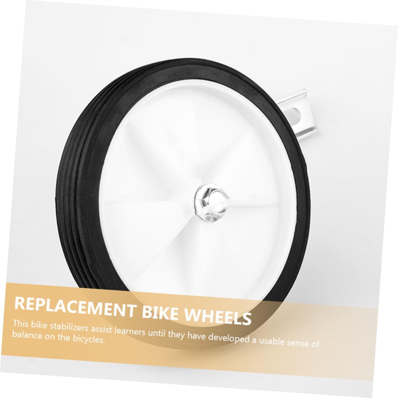 Package List 1 x Set of Training Wheels Characteristics -Color:Silver trainer wheels for bike -Product Info:Auxiliary wheel accessories -Size:30.00X15.00X10.00cm/11.79X5.89X3.93in bike wheels replacements -Material:Flexible glue and steel bike training wheels -Thicker than the ordinary training wheel and added a small bracket that it's more stable bicycles training wheels. -This bike stabilizers assist learners until they have developed a usable sense of balance on the bicycles training wheels for bike. -Professional and practical design with beautiful appearance, easy to install and US bike auxiliary wheels. -Anti-slip, wear resistant, providing stability and help to ride a bike without training wheels for bike -The wheel is designed with the sturdy construction, more safe for your bike wheels.Goods Informationcycling training wheels These rear wheels provide the necessary safety and stability.training wheels This is a bike training wheel, made of good material, and it is easy to install.replaceable training wheels And this set can be your ' helper. bike training wheels What's more, your will like this when they are training bike.bike accessories A great starter kit for your first cycling lesson!