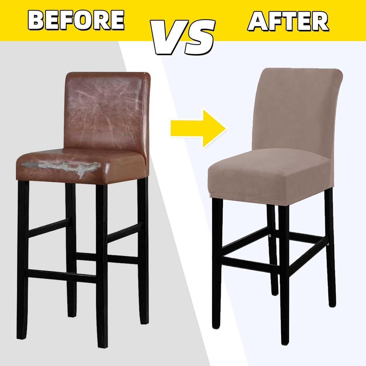 OUTFYT Stretch Velvet Bar Stool Chair Covers for Counter Height Side Chairs, Non-Slip Washable Pub Counter Stool Chair Slipcover Furniture Protector for Dining Room