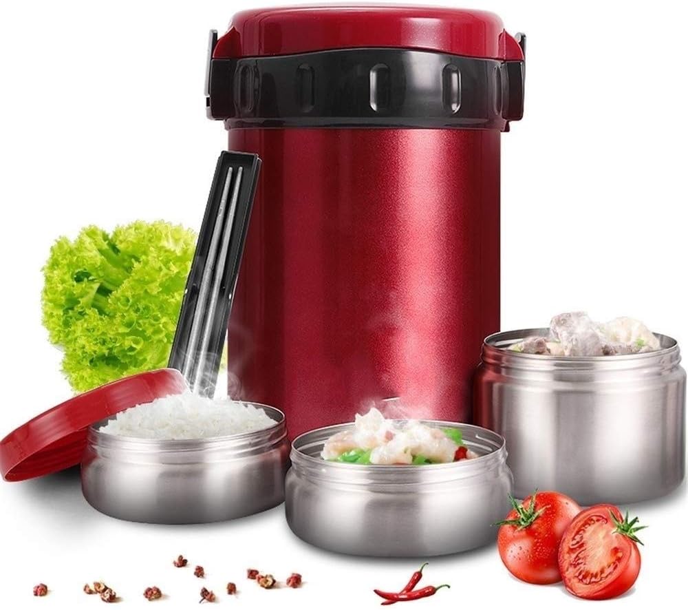 Vacuum insulated lunch box stainless steel food cans 3 layers food container food hot lunch container leakproof food storage box - with handle 1.8L insulationOur portable vacuum insulated food cans are for noodles, vegetables, soups, mashed potatoes, porridge and more. The insulation keeps the food container warm or chilled for 6 hours. Portable and dishwasher safe. Due to the wide mouth, easy to clean and fill, it can be easily removed.Material: Food grade 304 stainless steelSize 4.92X8.86Inch, 1.8L / 63ozKeep food and beverages hot and cold, without BPA / PVCIncludes:1x 3 layers vacuum insulated lunch box1x chopsticks1x Carrying caseIt will not retain any odors or scents from the stored food. We attach great importance to the safety and health of our customers