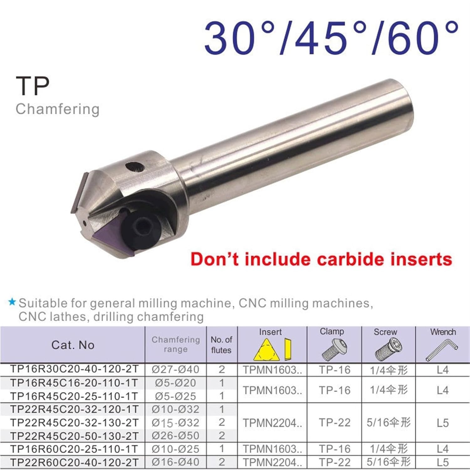 Angle Milling CuttersTP30 45 60 Degree Lathe Machining Tungsten Steel Milling Cutter Inserts Holder End Mill Drill Chamfering Tools 1Pcs==========Certification : noneOverall Length : 130mmDiameter : 20mmOrigin : Mainland ChinaModel Number : TP-30 45 60Type : Chamfering ToolsMaterial : Carbide