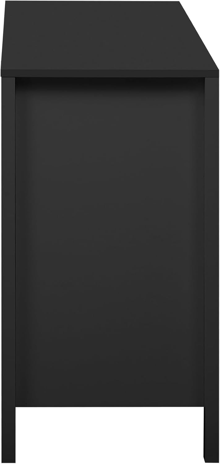 Elevate your storage and style with this sophisticated U_STYLE console cabinet. Measuring 47.2 x 15.3 x 28.3 inches, this versatile piece features an elegant wave design that adds visual interest to any room. The cabinet combines ample storage with modern functionality, offering three spacious drawers and two cabinet compartments with adjustable shelves to accommodate items of various sizes. The soft-close doors ensure smooth, quiet operation, while the sleek metal handles in an attractive finish provide both durability and style. Perfect for entryways, hallways, or living rooms, this cabinet's sturdy construction and black finish make it a striking addition to your home. The contemporary design effortlessly balances form and function, providing a perfect solution for organizing books, dinnerware, or decorative items while maintaining a clean, sophisticated appearance. The adjustable shelves allow for customizable storage options to meet your specific needs.