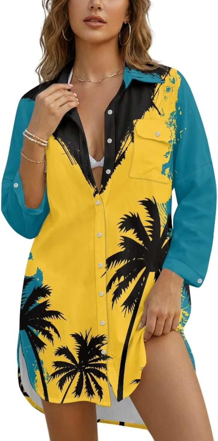 Embrace summer freedom with a shirt dress that goes wherever you do. Inspired by timeless button-down silhouettes, this long-sleeve shirt dress is designed with a relaxed yet flattering cut. The lapel collar frames the face beautifully, the chest pocket adds a touch of utility, and the curved hem creates a lengthening effect—every detail is crafted for effortless, vacation-ready style. We’ve chosen a lightweight fabric that feels soft against the skin and breathes easily in warm weather. The long sleeves offer thoughtful sun protection, making this piece as practical as it is pretty. Whether you’re sipping something chilled by the pool, exploring a coastal town, or simply enjoying a sunny day out, this dress keeps you cool and composed. But it’s not just for holidays. Throw it on over a tank top with sneakers or sandals, and it becomes that easy, go-to piece you’ll reach for again and again. Size Guide We offer seven sizes: S, M, L, XL, 2XL, 3XL. To ensure the best fit, please refer to our size chart before ordering, which includes detailed measurements for bust, length, and sleeve length. Note: Slight size deviations (1-2 cm) and color differences may occur due to manual measurements and screen display settings