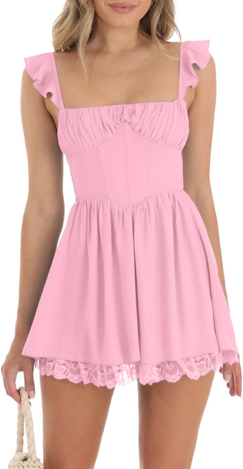 Women Corset A-Line Dress Lace Patchwork Mini Party Dress for Cocktail Beach Club Summer StreetwearFeaturesLace patchwork hem, square neck, flying sleeves, corset waist, ruched bust, mini length, a-line design, casual dresses for women can easily show off your charming curves, a perfect addition to your wardrobe replenish.Suitable for casual, club, cocktail party, holiday, outdoor, party, beach, vacation, travel, shopping, birthday, street, night out, work, daily, dating.SpecificationCondition: 100% Brand NewMaterial: PolyesterStyle: FashionGender: WomenSeason: SummerPattern: Lace PatchworkOccasion: DailyPackage Including:1 * Women DressNote:There may be 1-2 cm deviation in different sizes, locations and stretch of fabrics.Size chart is for reference only; there may be a little difference with what you get.Color may be lighter or darker due to the different PC display.PromiseIf the product has any quality problems, please feel free to contact us, we will help you solve the problem as quickly as possible.