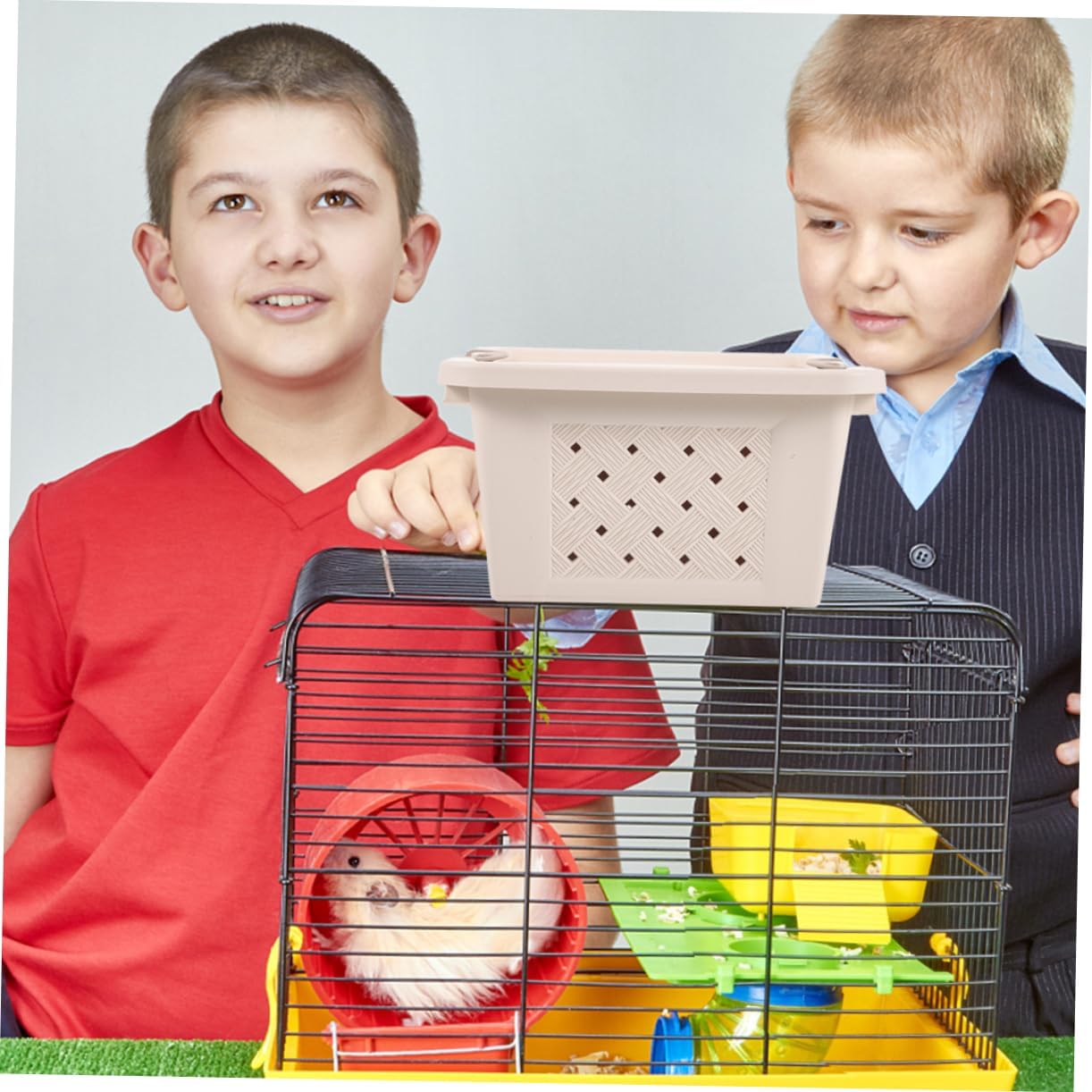 Package List 2 x hamster carriers Features -Color:Beige hamster carrier cage -Durable material: This pet outdoor carrying case is made of stable plastic material, which is comfortable for your pet small pet cage. -Size:22.00X22.00X12.00cm/8.65X8.65X4.72in pet carrier -Wide application: Suitable for hamster, gerbil, guinea pig, chinchilla, squirrel, hedgehog and other small animals hamster carrying case. -Material:Plastic cage -Breathable design: for small pets. With , increase air flowing, ventilation, convenient, travel more secure. hamster travel carrier -This Pet Carrier case is breathable for the pet to stay in. Suitable for sightseeing, camping, travel or trips small pet container. -Specially designed for pet carrying-out. present choice for friends who need a sturdy pet case travel hamster case.Goods Informationtravel pet cage Are you looking for a professional Hamster Cage? Are you in search of a sturdy, trustworthy Hamster Cage that can help you travel with your lovely hamster? , ! Our professional Hamster Travel Box must meet your needs