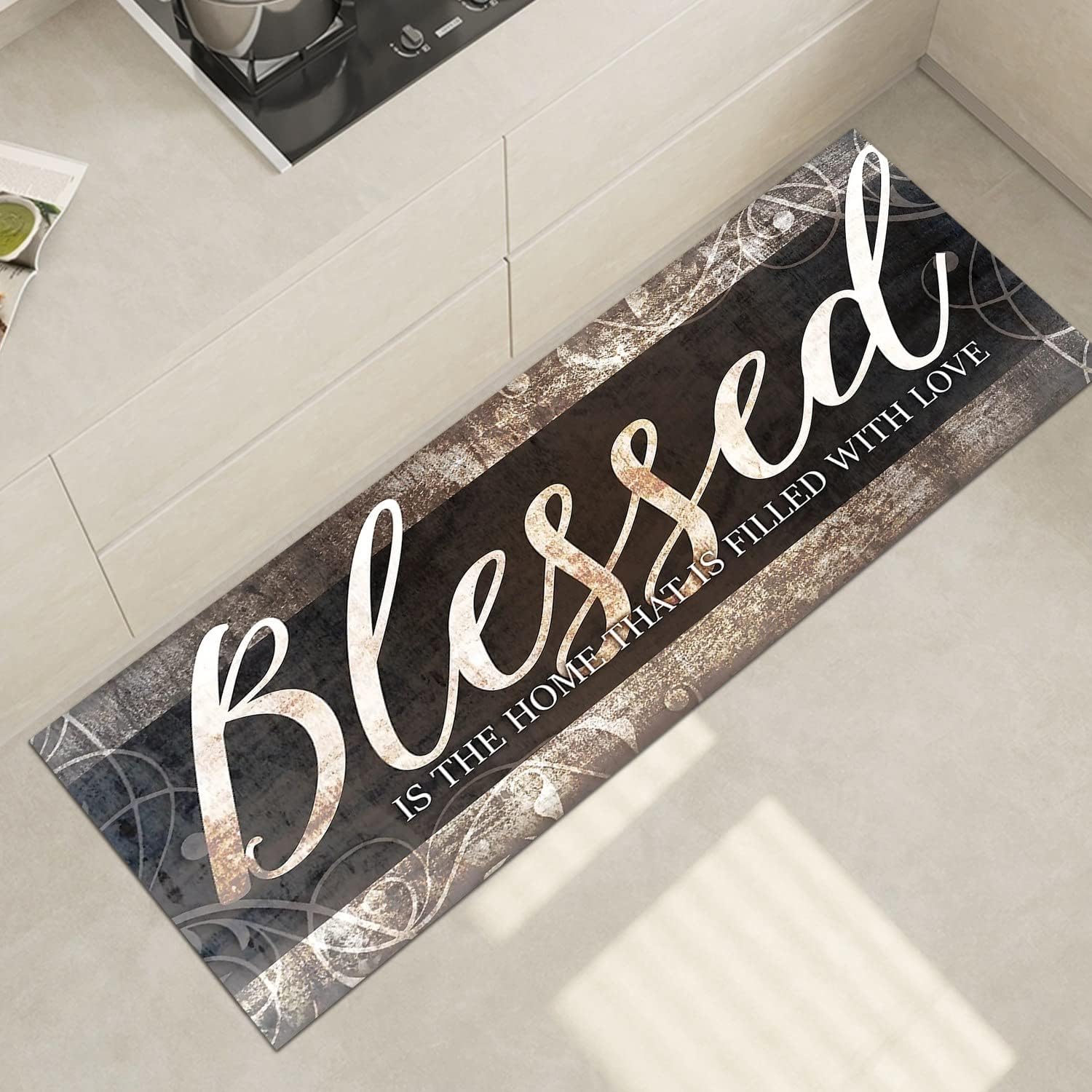 Home Sweet Home Rugs Vintage Kitchen Living Room Bedroom Rug Best overall Classic design meets contemporary decor with the Home Rugs Vintage Bedroom Living Room Kitchen Rug. Featuring a dual-colored vintage look, this rug adds elegance to your kitchen bedroom living Room. This lovely family home sweet home rug is made of polyester & has a rubber backing that prevents you from skidding accidentally. This dependable rug will give your cooking area a boost & protect your floors from water or food spills. Besides, this home sweet home rugs runner can decorative your bedroom living room,give you a good good & relax every day. Why we love it: Fits many design aesthetics Great use as an accent rug too Easy to clean Why we don~'t: Color fades quickly after a few repeated washing.