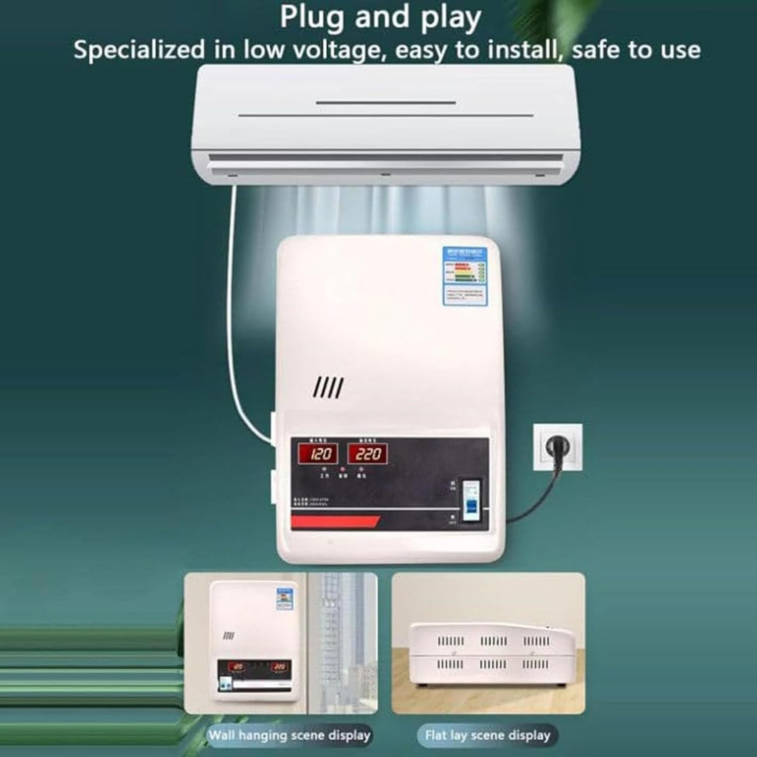The intelligent voltage stabilizer is safe and stable, protects the whole family, and easily solves the problems caused by unstable household voltage.InformationName: Single-phase voltage stabilizerDelay time: 8 secondsVoltage model: 15000W, 20000WFrequency: 50/60 Hz<;1minInput voltage: 120-270VEfficiency: ≥95%Rated power: 50HZOutput voltage: 220V±5%Waveform distortion: No additional waveform distortionNote:1. Before powering on, please carefully check whether the power connection is correct and strictly reverse the power cord.2. Please accurately calculate the load power and do not overload.3.15000W, 20000W should be connected to the main switch.Packing list:1*Voltage regulator1*ManualNote:1. Please check the color and size before purchasing2. The above data is for reference only, the size is measured manually, the error is 1-2 mm, please understand, thank you3. If you find any problem with our products, please feel free to contact us by email, we will solve the problem as soon as possible